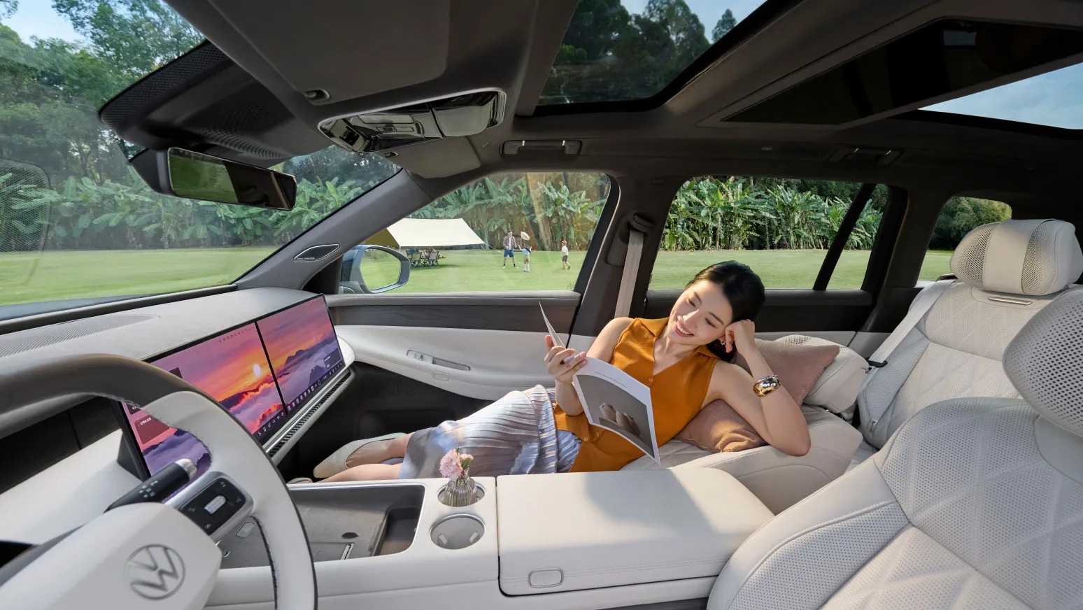 进入车内,ID.ERA 9X彻底颠覆了传统合资车“保守”的刻板印象。2+2+2的六座布局精准切中多孩家庭与商务接待的痛点,全车标配的三把动态零重力座椅,更是将舒适性拉满。特别是二排副驾侧座椅,在支持动态零重力模式的同时,还配备了12L大容量防下陷气囊与集成式安全带,解决了舒适与安全的矛盾。