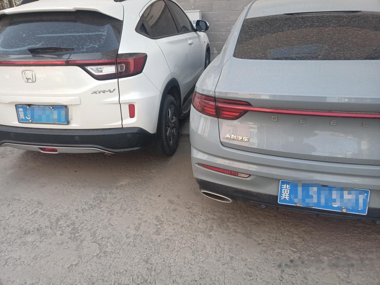 白色本田XRV司机一侧得有一米宽,副驾一侧也就有十公分,咱就说你让灰色吉利车司机