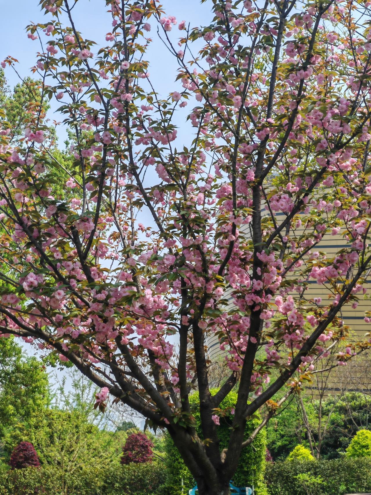 记得去王家墩公园时,166株樱花树沿路排开,重瓣花朵层层叠叠,形成“樱花长廊”,那场景灿若云霞。沙湖公园的晚樱也不逊色,漫步其中,仿佛置身花的海洋。
