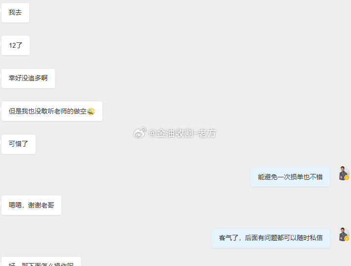 虽然这位朋友听老方的没有冒险去追多,但也不敢做空,不过没关系,能帮他避免一次损单总归是好事!