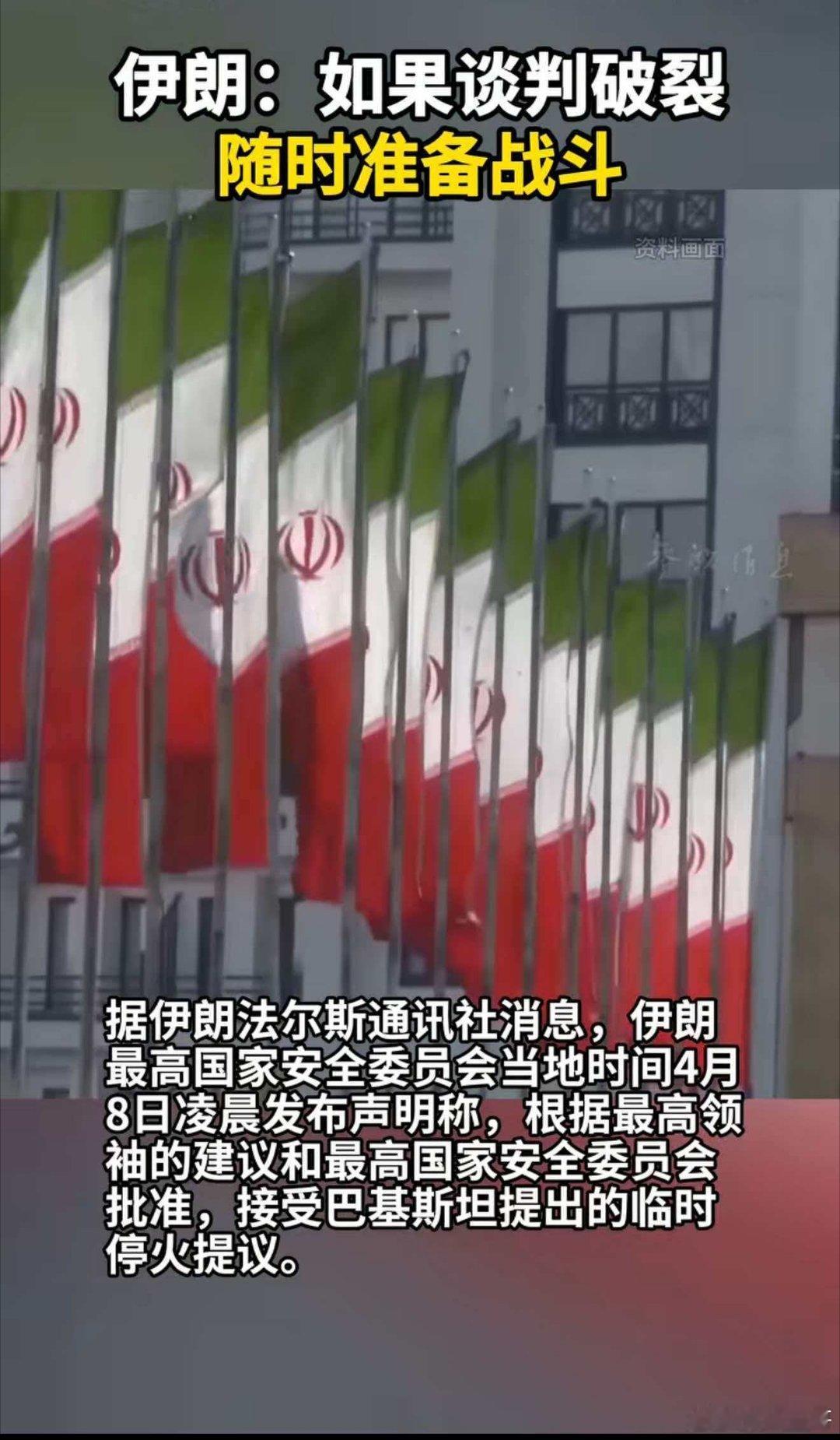 据伊朗法尔斯通讯社消息,伊朗最高国家安全委员会当地时间4月8日凌晨发布声明称,根据最高领袖的建议和最高国家安全委员会批准,接受巴基斯坦提出的临时停火提议。
