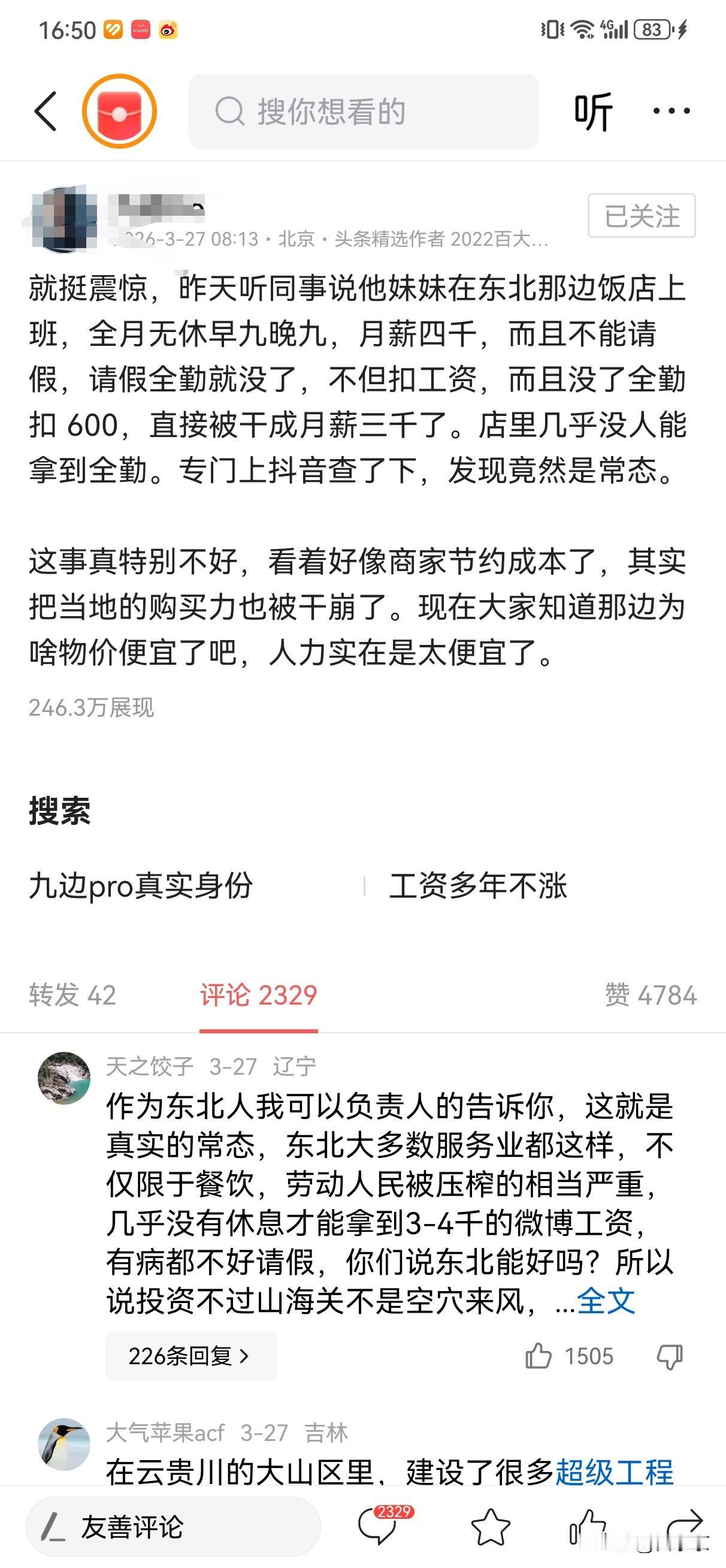 看完这篇文章后,我觉得核心是,通过饭店服务员背压榨的细节,揭开了东北整体物价低背后扎心的真相。