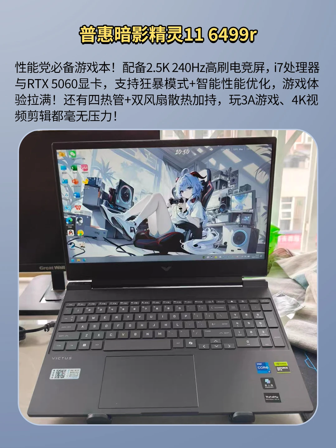 配备 2.5K 240Hz高刷电竞屏,i7-14650HX处理器与RTX 5060显卡,游戏体验拉满!还有四热管+双风扇散热系统加持,玩3A游戏、4K视频剪辑都毫无压力!