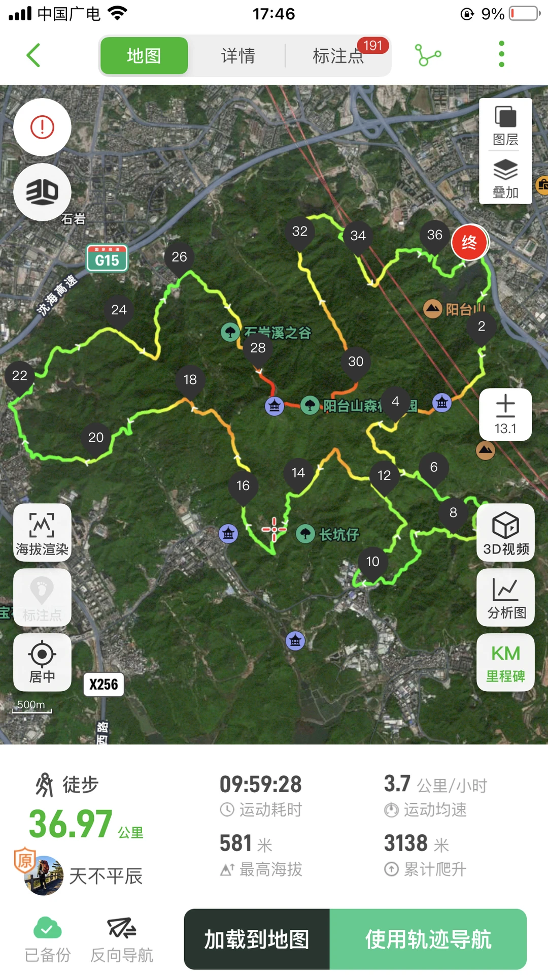 ❽累计爬升:3138m