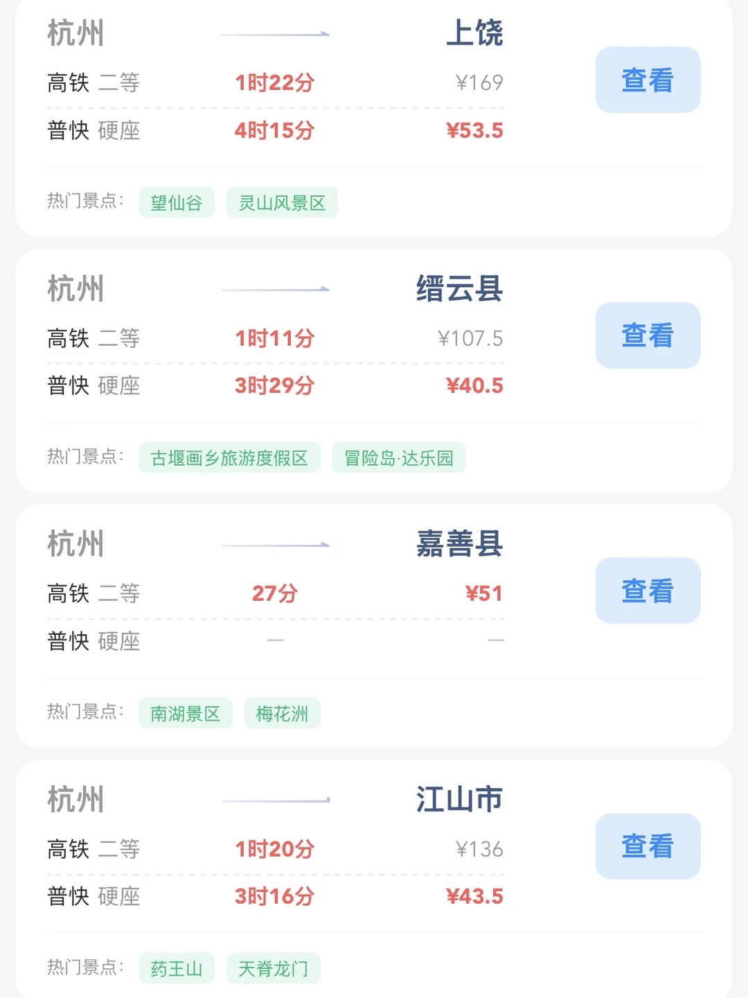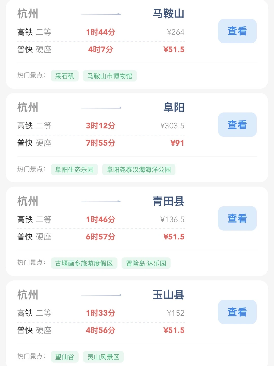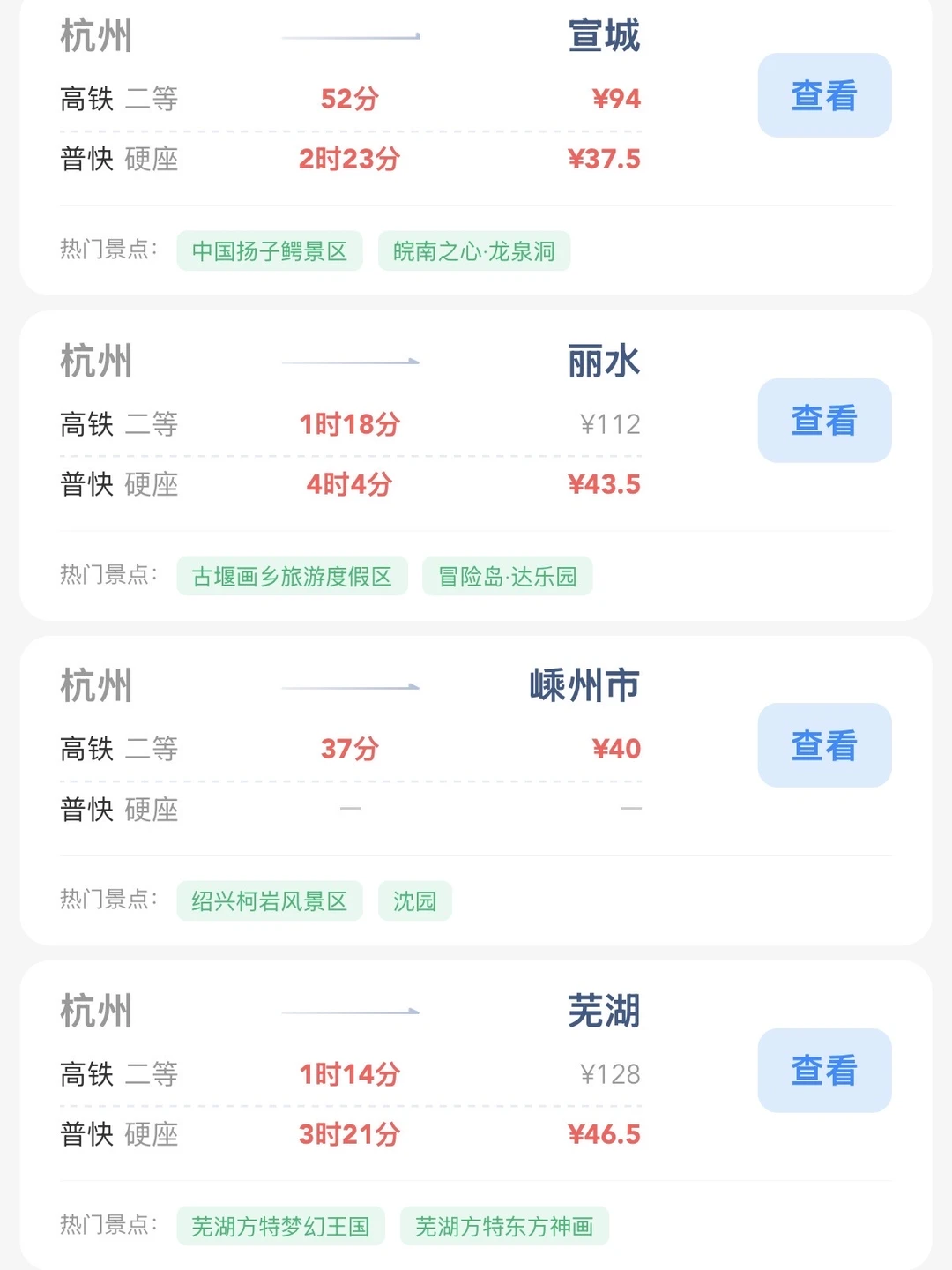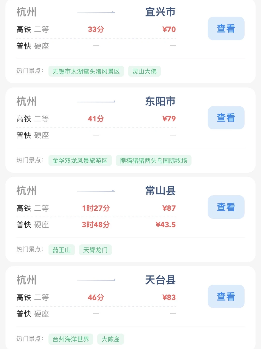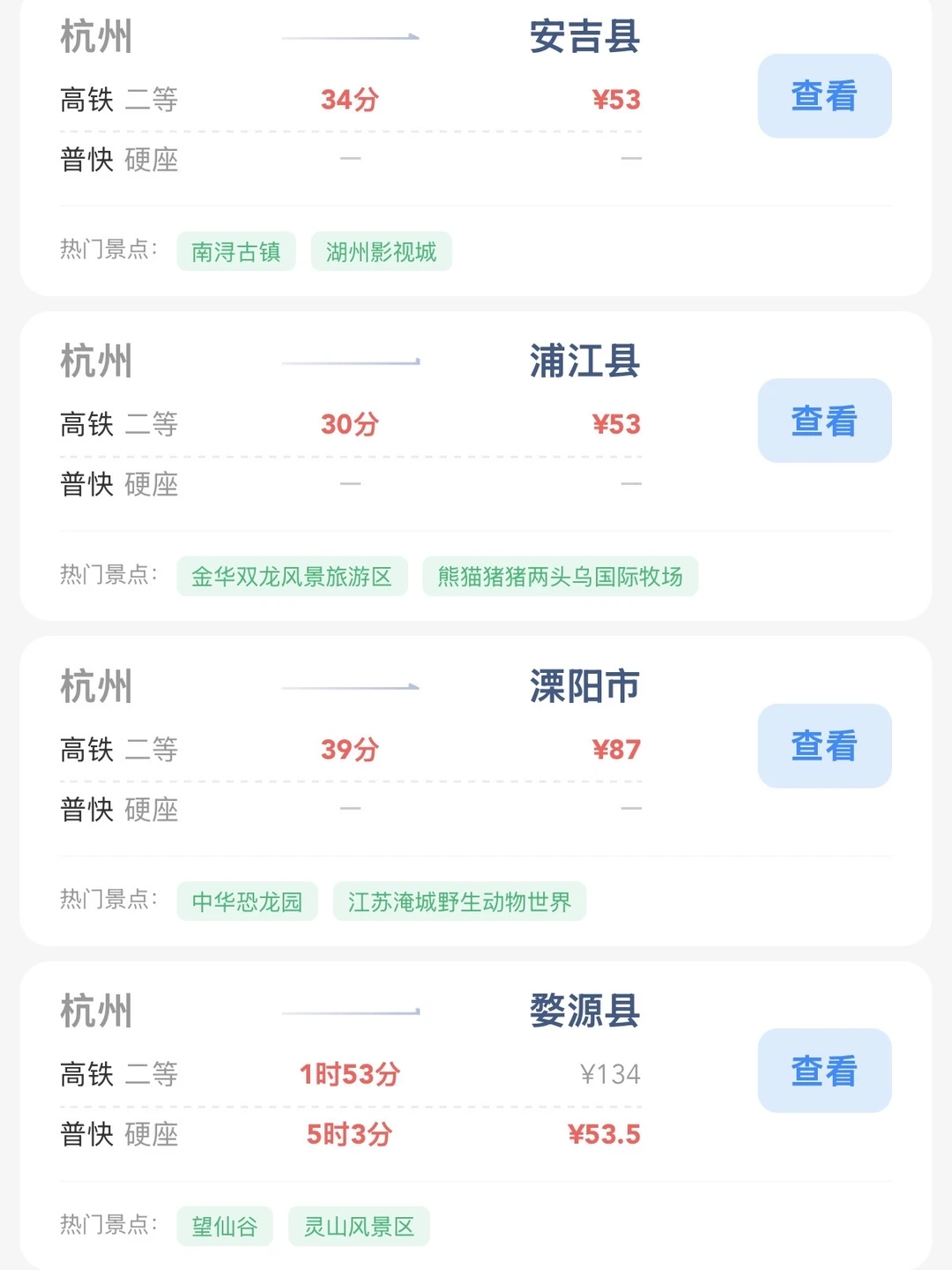 主包熬夜帮大家整理了一份杭州出发一百块的火车票就能去的周边旅游城市合集