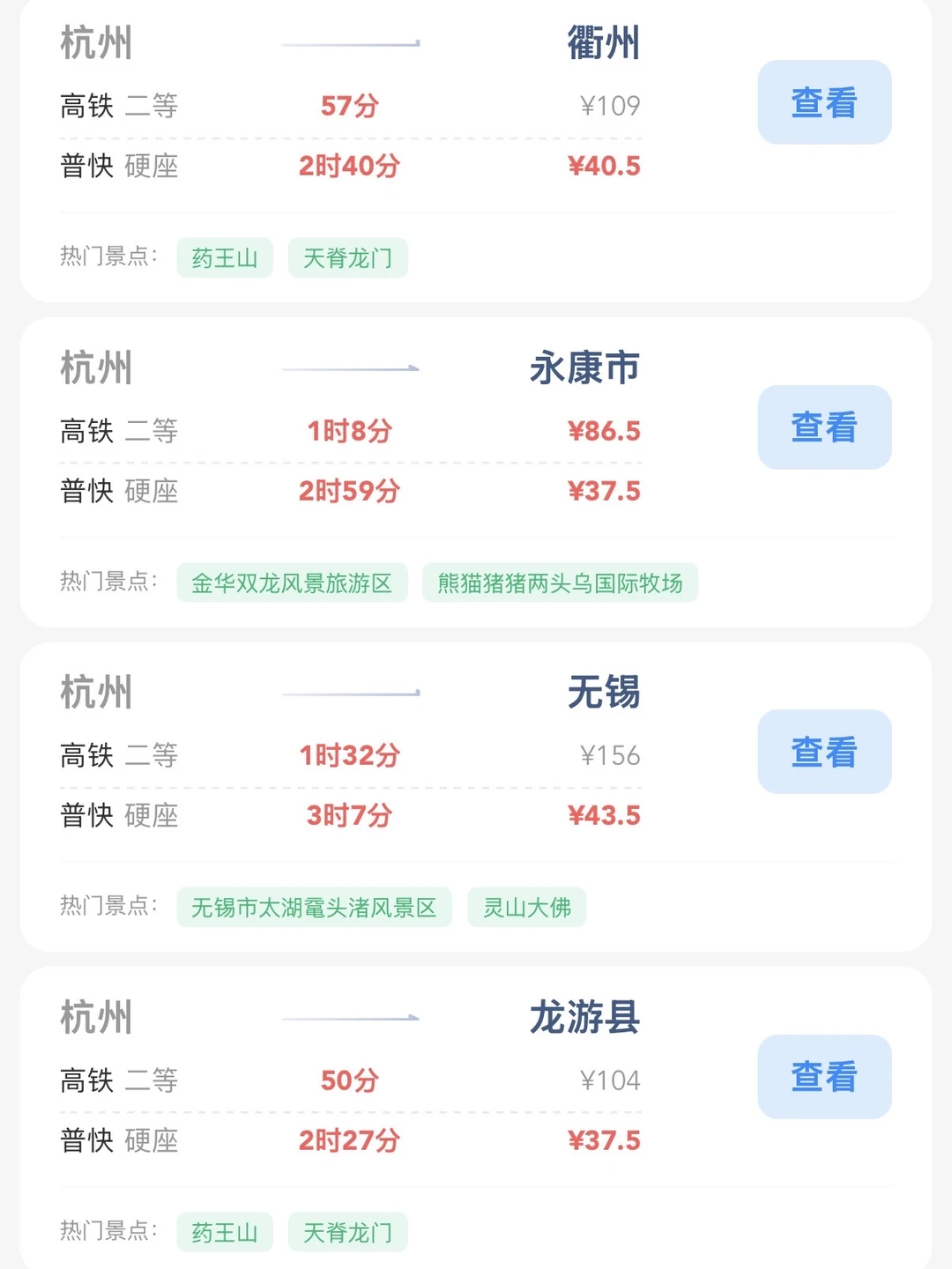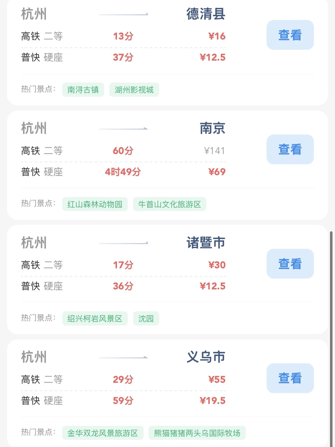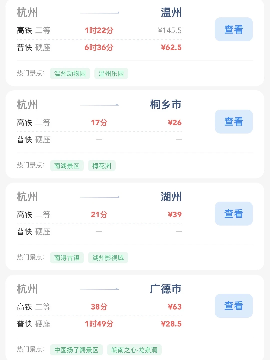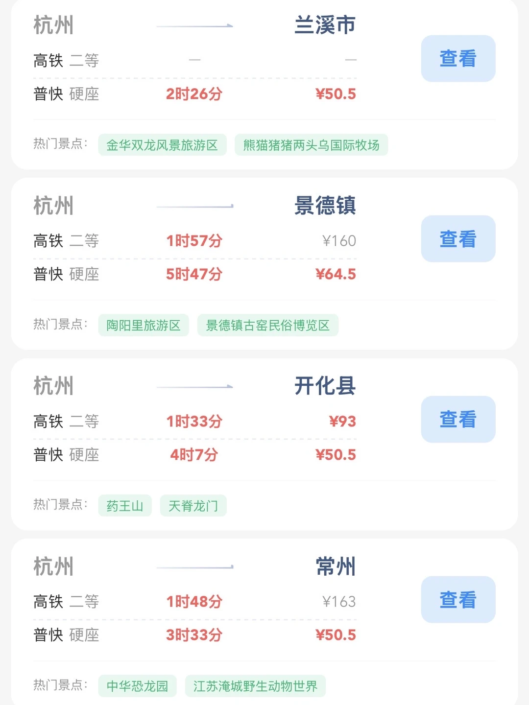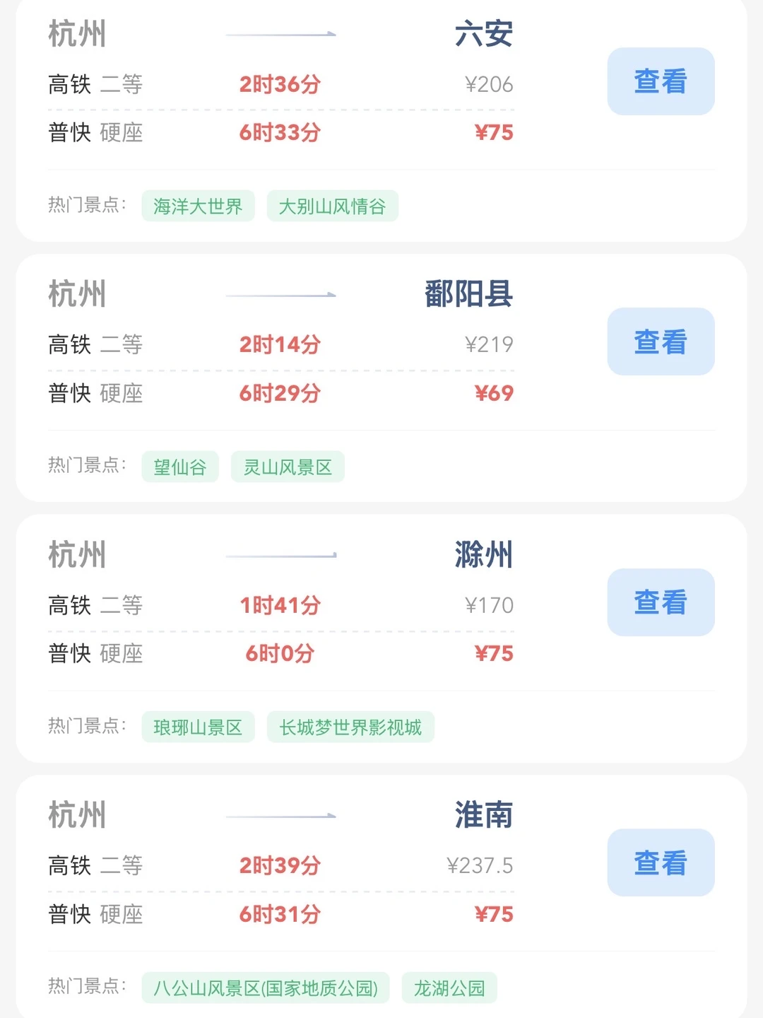 主包熬夜帮大家整理了一份杭州出发一百块的火车票就能去的周边旅游城市合集