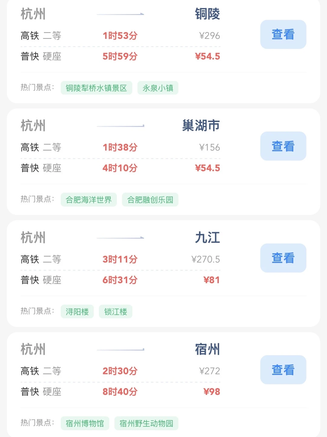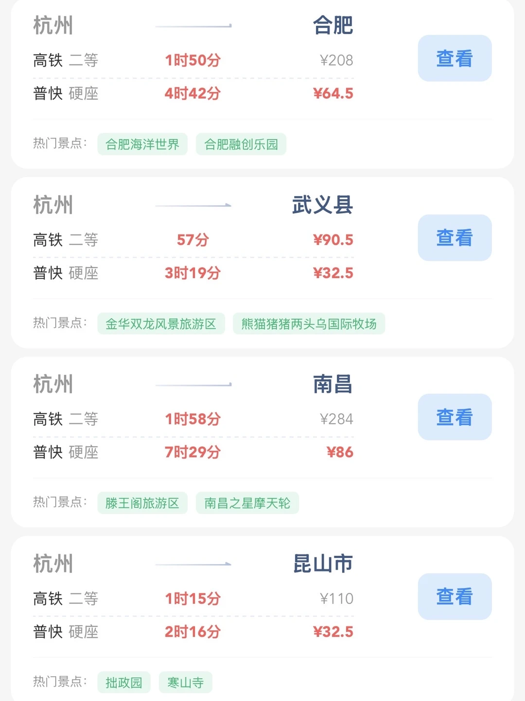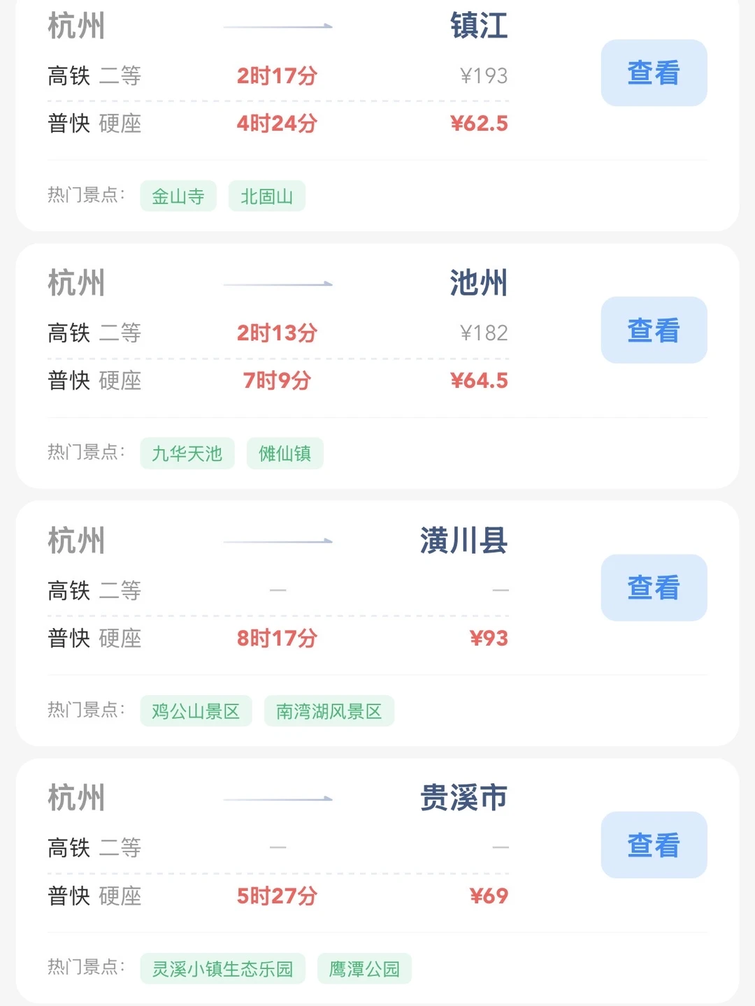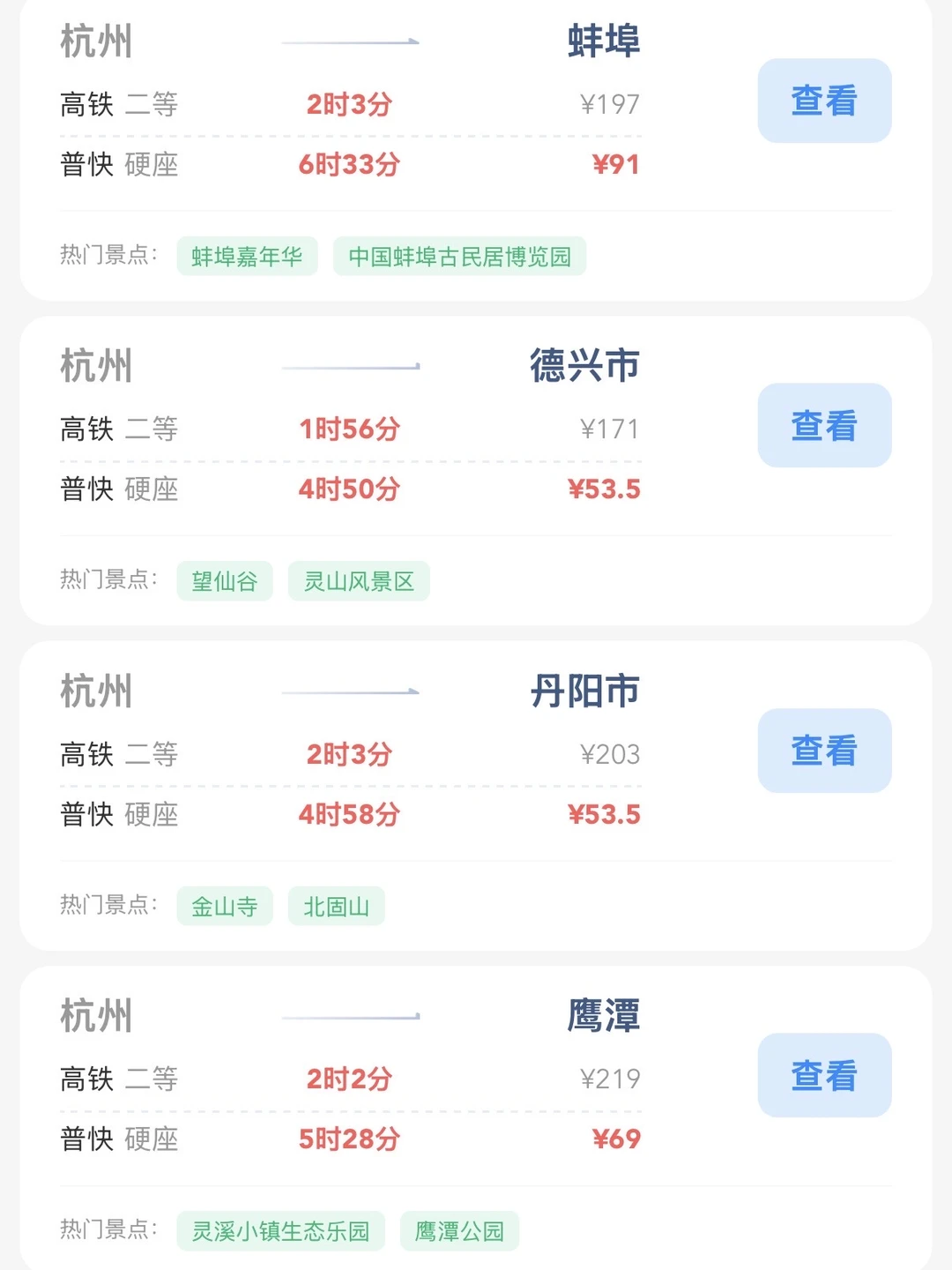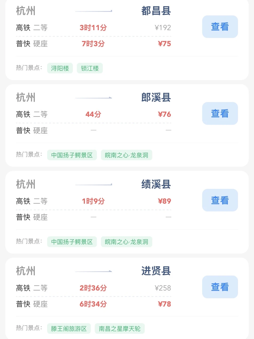 主包熬夜帮大家整理了一份杭州出发一百块的火车票就能去的周边旅游城市合集