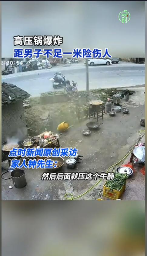 “太吓人了!”近日,广西梧州,一男子用高压锅煮完莲藕之后,就简单洗了一下,也没仔细清洗排气孔,就接着炖牛腩了。没想到,突然之间,高压锅就炸了,还带着把煤气罐也拽进了沟里。男子离着也就不到一米!网友:还好没炸到人!