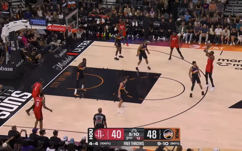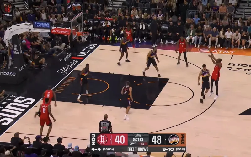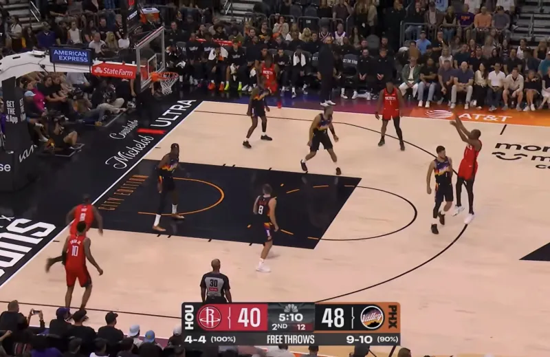 杜兰特这球略危险,感谢布克吧 今天火箭VS太阳的比赛布克及时抽脚,球品没得黑,