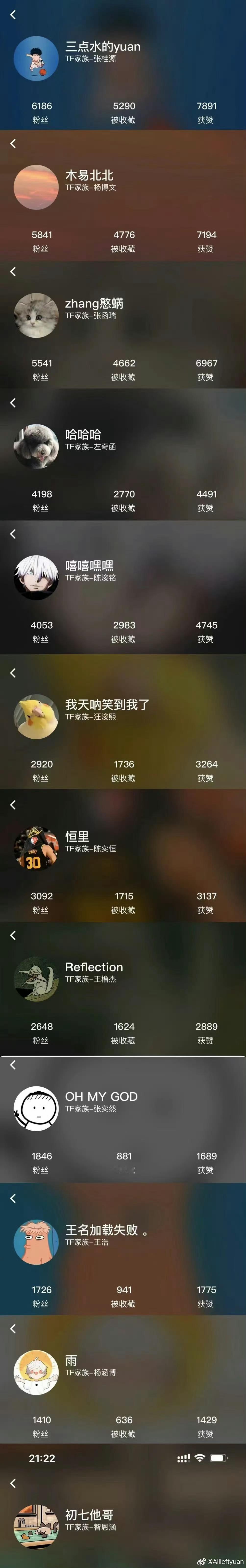TF四代高会粉丝数关闭TF四代高会粉丝数关闭了……排名大战终于要结束了嘛🥲谁还记得高会刚开时候的排名(p2)