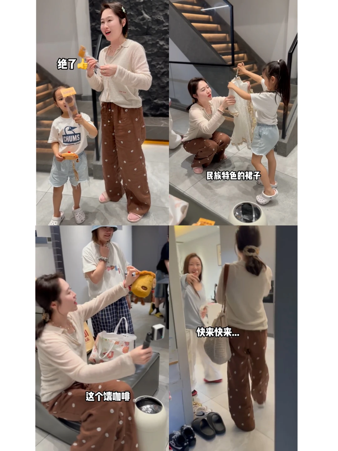 马君妍这个孕期vlog看的好感动啊,看着肚子一个月一个月变大,最后抱着喜悦妹妹出镜那一刻真的绷不住了,又勇敢又美丽的君妍妈妈!!🥹翻到去年同期这组木耳边开衫撕拉片,粉色穿在她身上温柔又少女,对比现在生完依旧美丽,状态好到不像话💗去年还是给允儿买了民族风裙子的jiong妍姨,以后也可以给喜悦买啦~针织衫搭咖色亚麻长裤舒服随性,看着就让人心情好,妈妈的衣品在线,喜悦妹妹的穿搭不愁了!!
