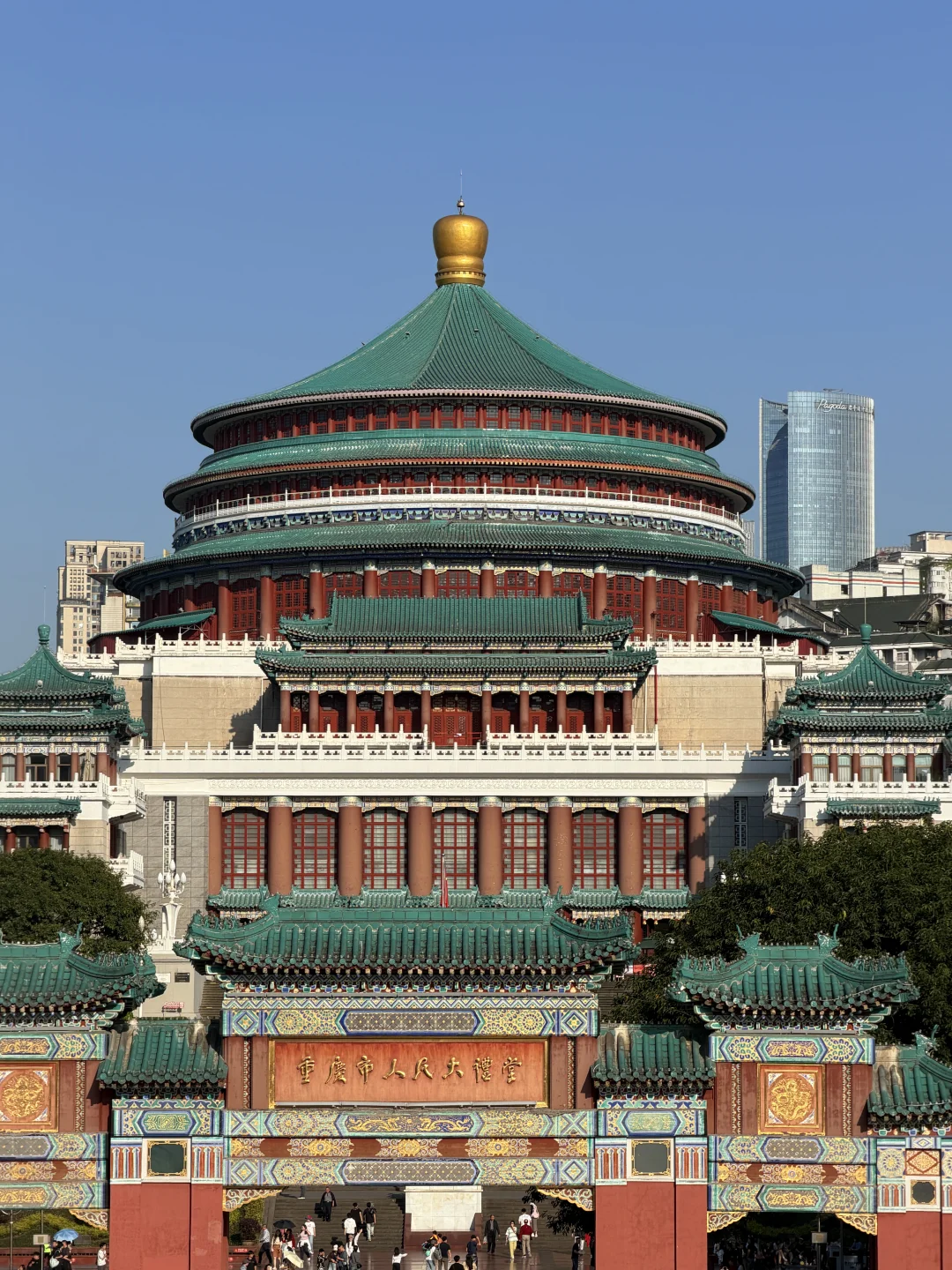 务必预留半天时间给三峡博物馆,了解重庆历史,打卡民选十大藏品。出博物馆就可以看到人民大礼堂,仿天坛设计非常出片。