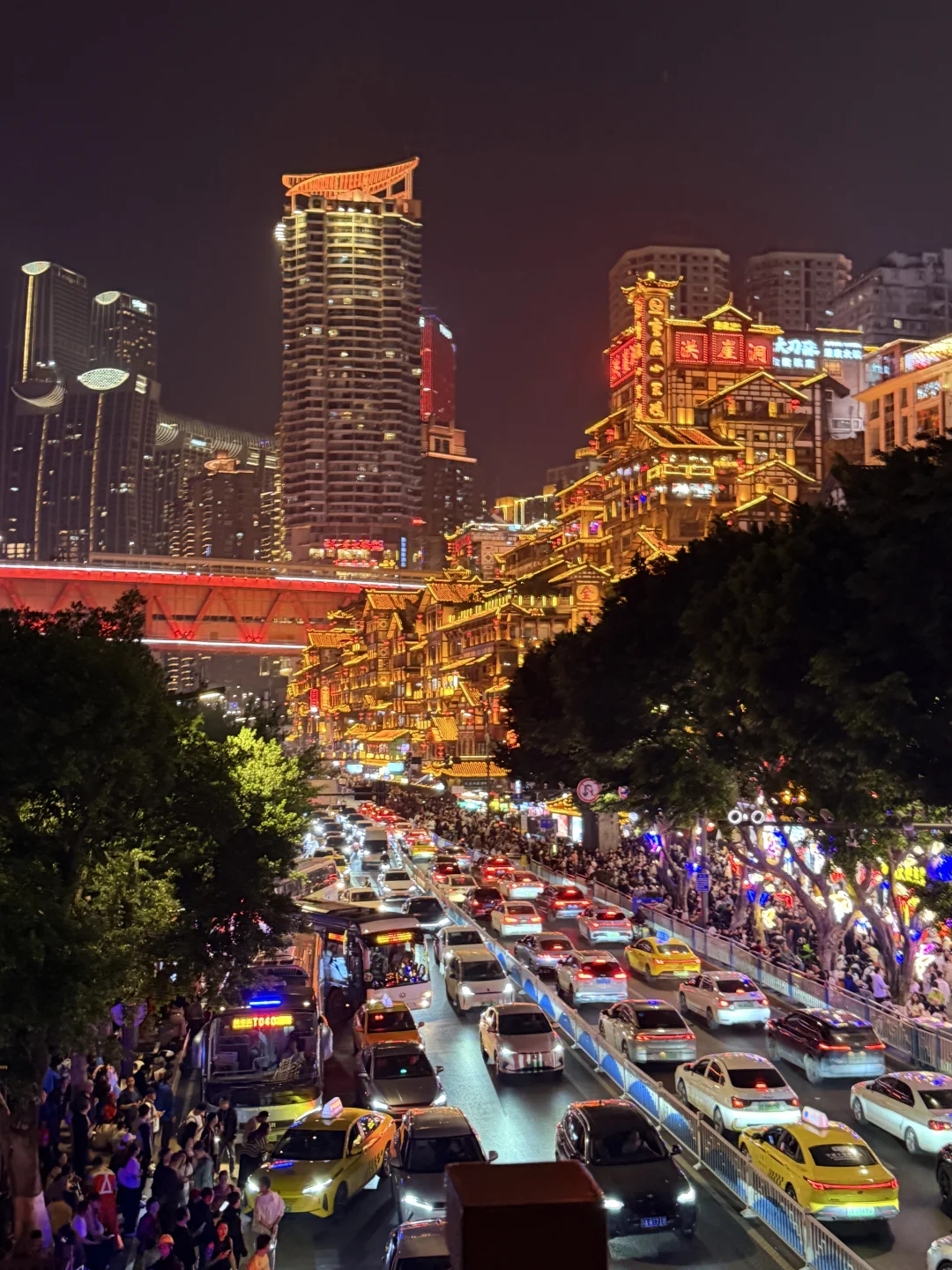 洪崖洞一定不要去现场!!!人贼多!可以考虑坐轻轨的时候拍摄,或者去对岸公园拍摄。仅出片,没其他好玩的。