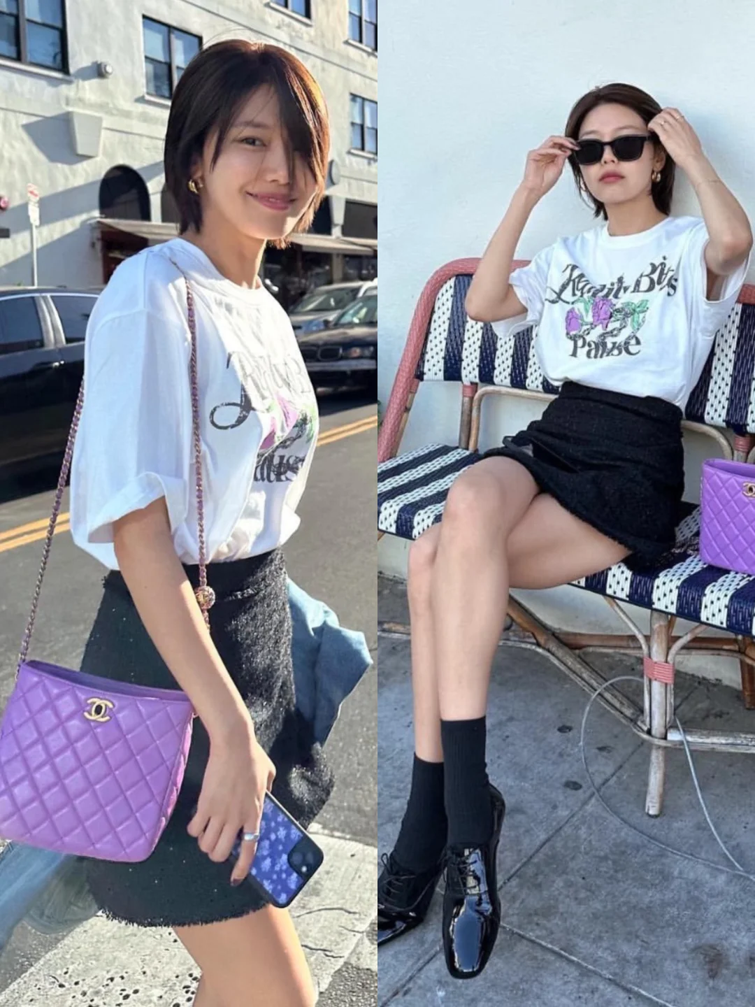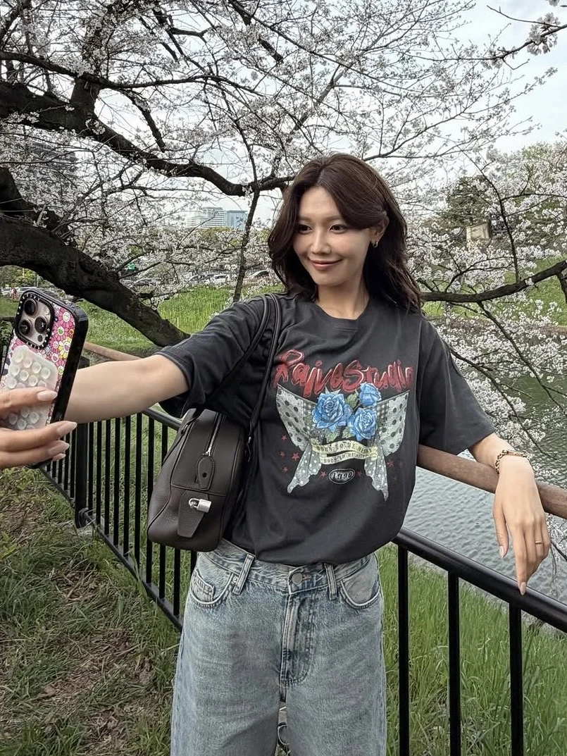崔秀英春日穿搭好松弛,36岁怎么越来越少女!