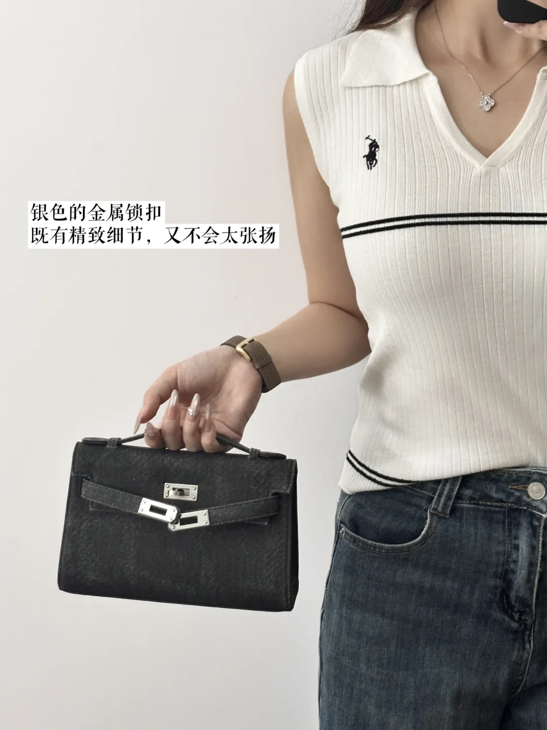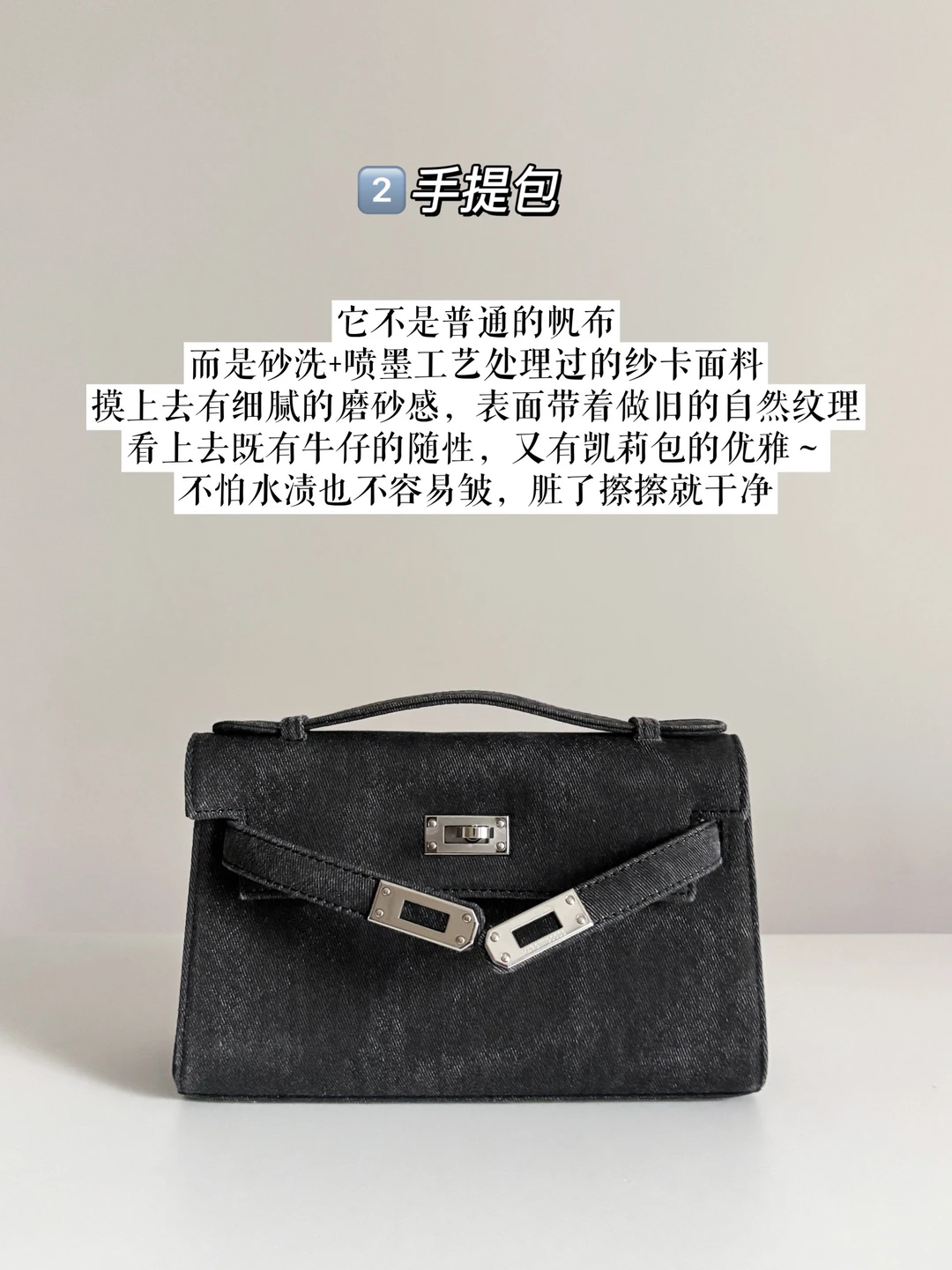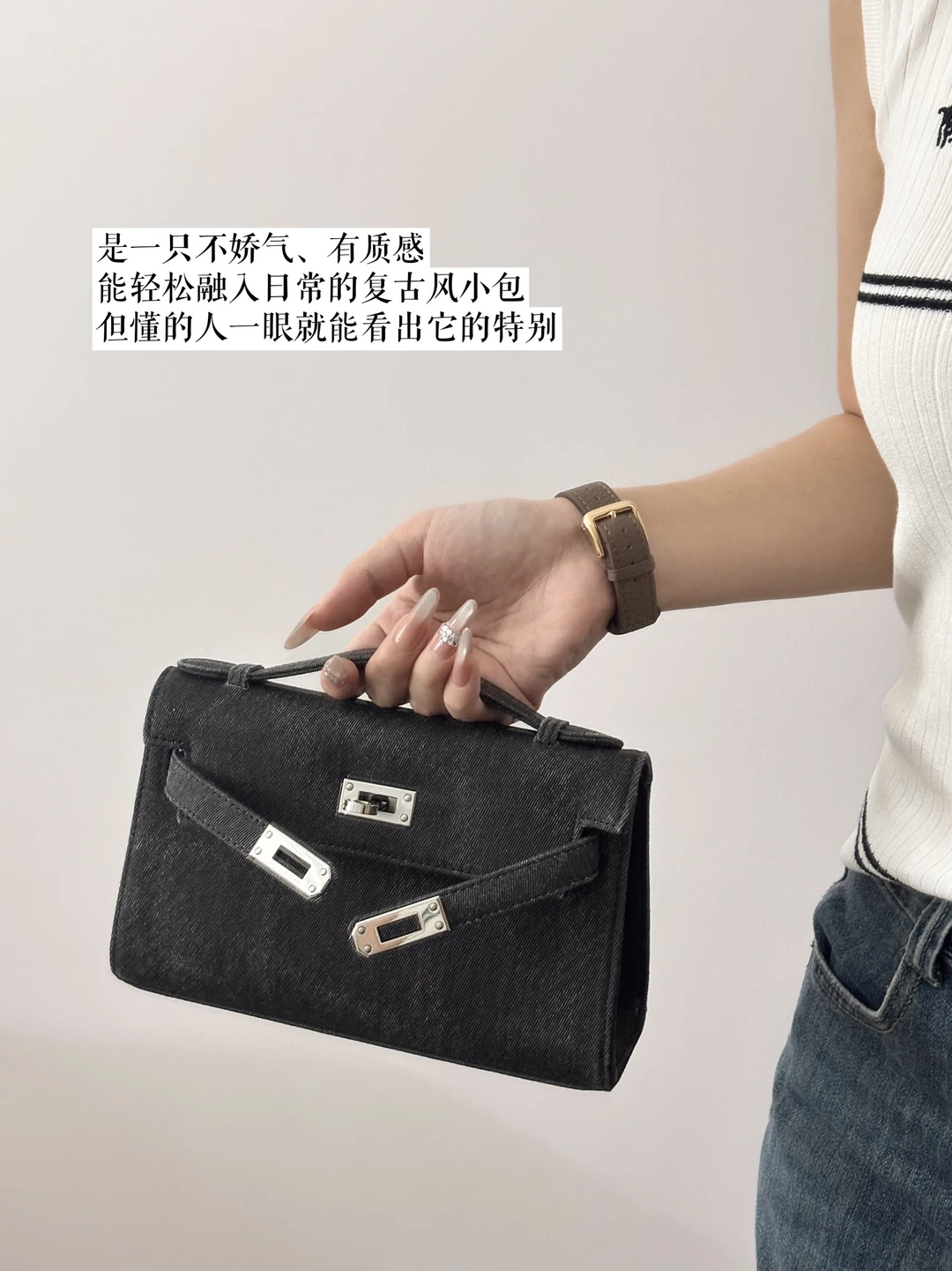 看上去既有牛仔的随性,又有凯莉包的优雅~