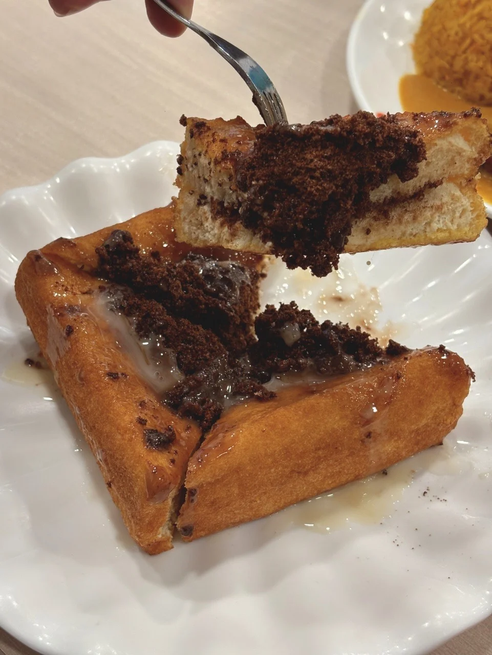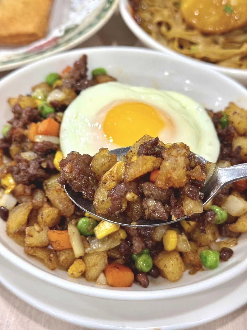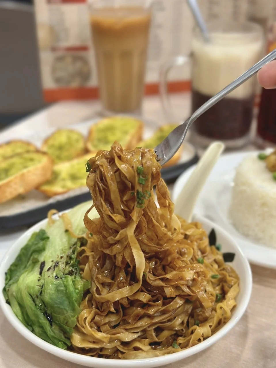 招牌干免治牛肉饭必点!牛肉碎炒得咸香入味,每一粒米都裹满肉香,我一个人能炫两碗。咖喱牛腩捞粗也超赞,粗面挂满浓稠咖喱汁,牛腩炖得软烂,一抿就化。香脆蒜蓉包和爆脆西多士,蒜蓉包刚出炉嘎嘣脆,西多士外酥里软,蘸炼乳绝了。配一杯冻奶茶,茶奶平衡不涩口,解腻又过瘾。白钟元老师来澳门拍《黑白大厨》澳门篇时也吃了干免治牛肉饭,果然识货!价格亲民,性价比真的绝,难怪一直都客流不断!
