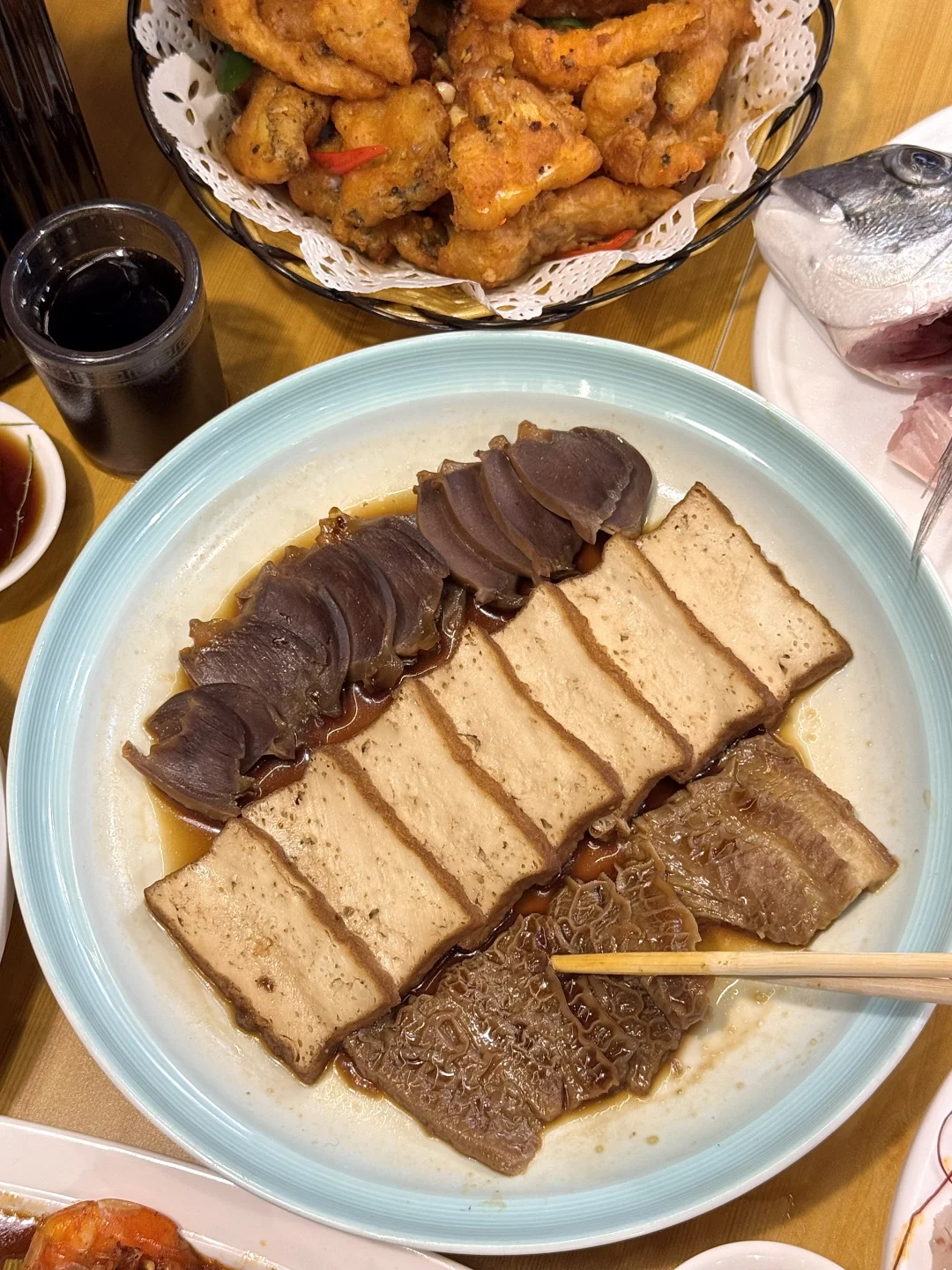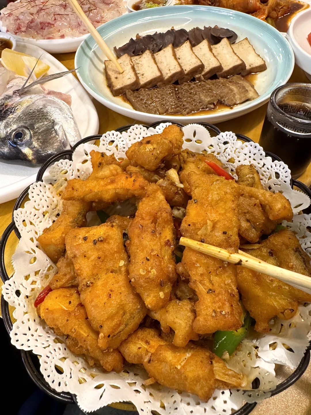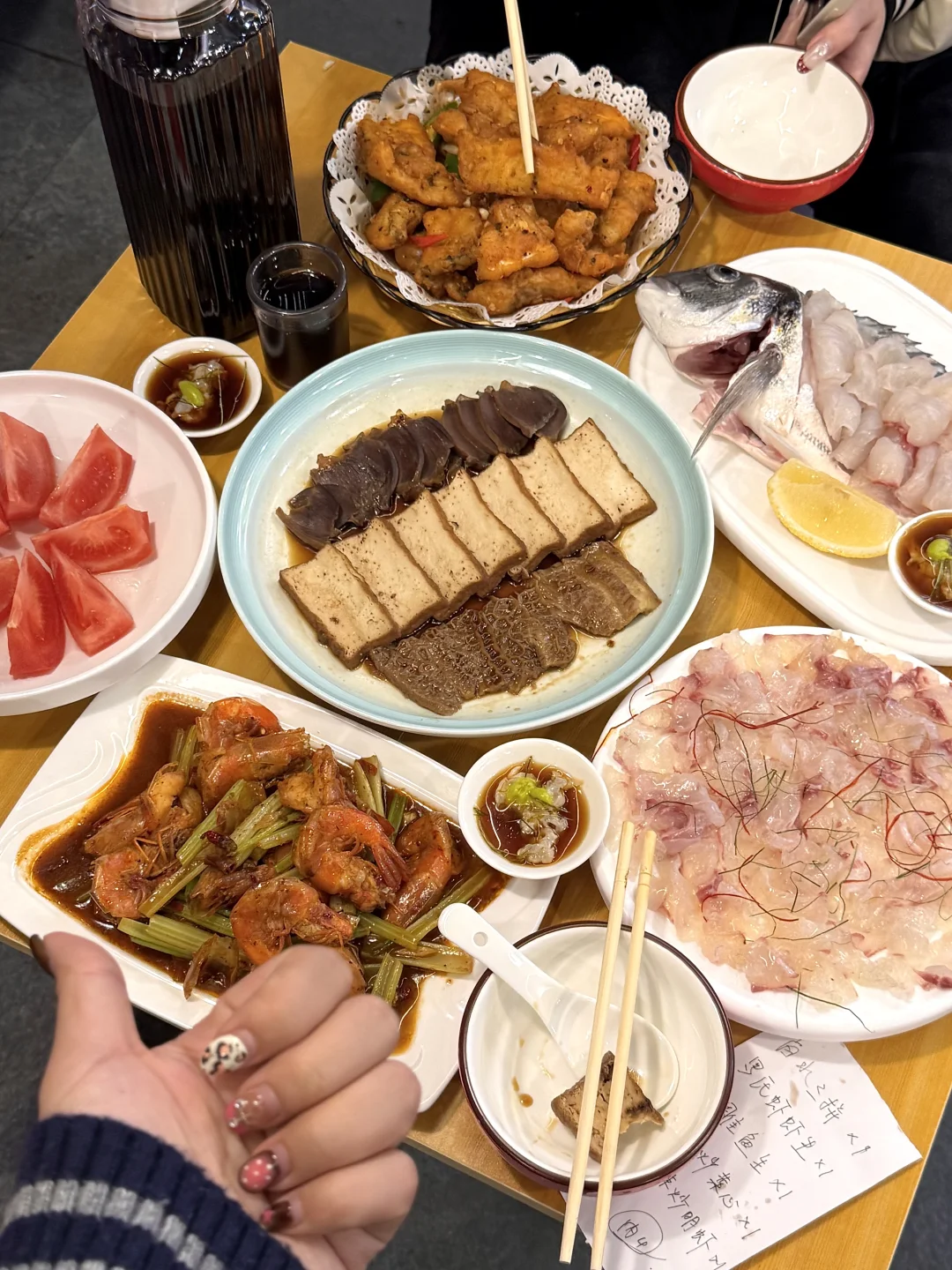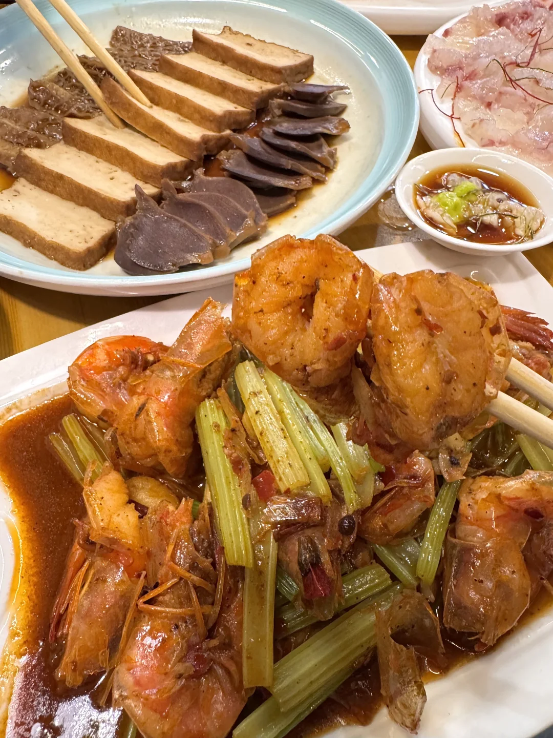 金雕鱼生!肥肥糯糯的,蘸点芥末酱油真的一口惊艳。。还有老广的潮汕虾生!晶莹剔透一定要拌上佐料 鲜嫩爽滑没有腥气~卤水拼盘、广式辣炒明虾…我心中杭州前三好吃的小馆!