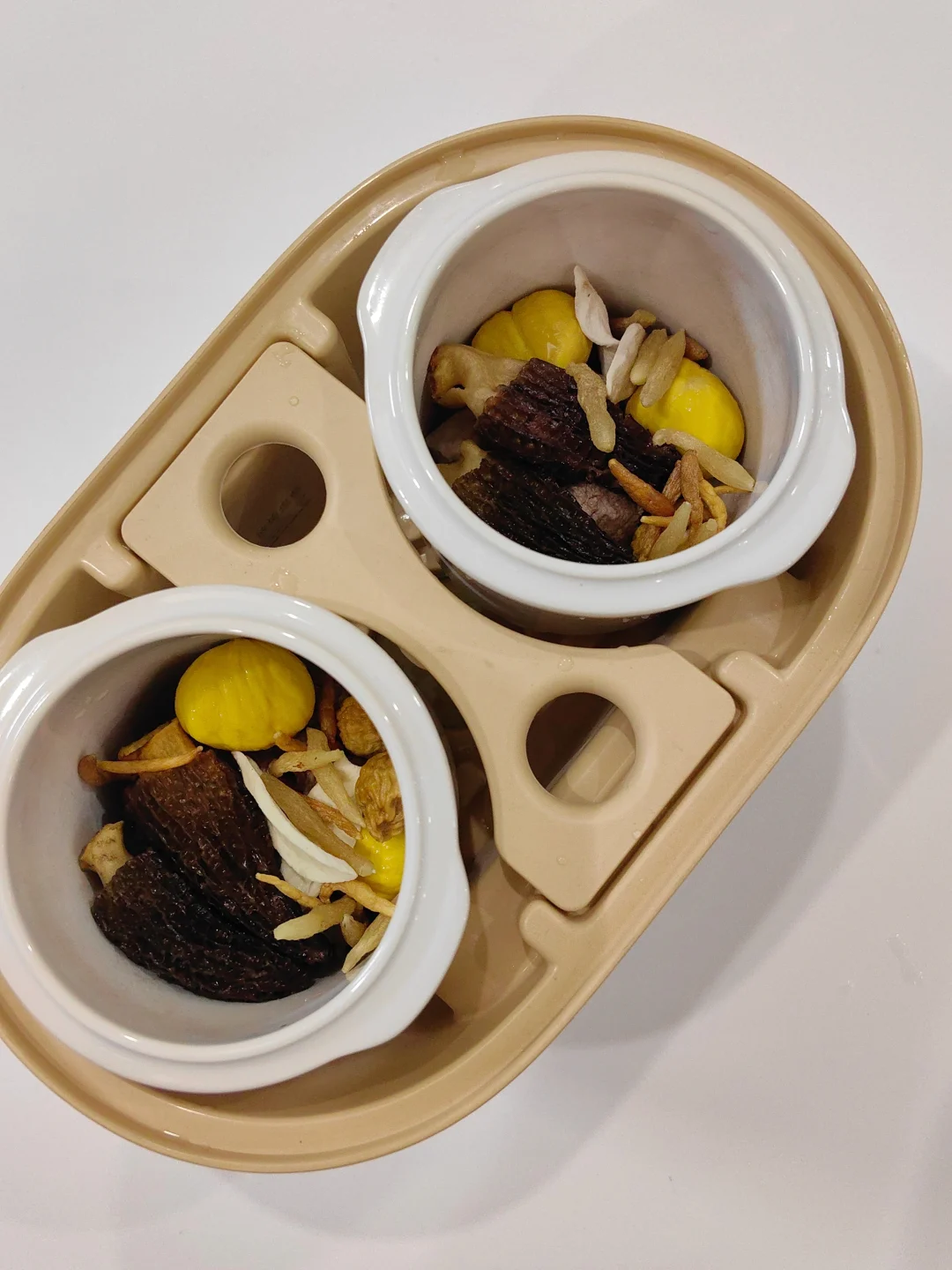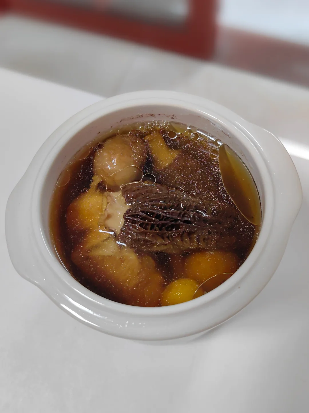 羊肚菌多清洗几遍,与其他食材一同放入炖盅,加适量清水炖2小时;