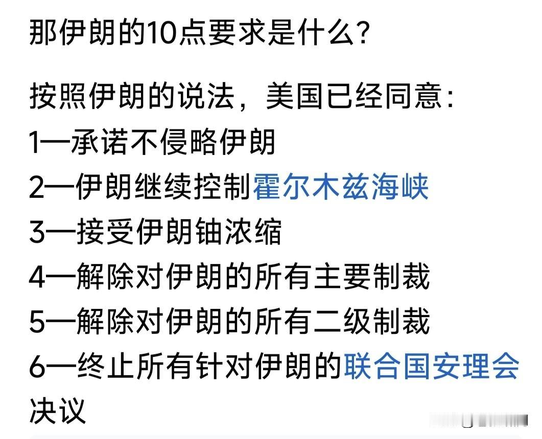伊朗这个“10条”,与美以的“15条”水火不容!这是表面现象,关键是一个“谈”字,还有互相妥协过程呢!两周时间之内,谁知道会发生什么事?