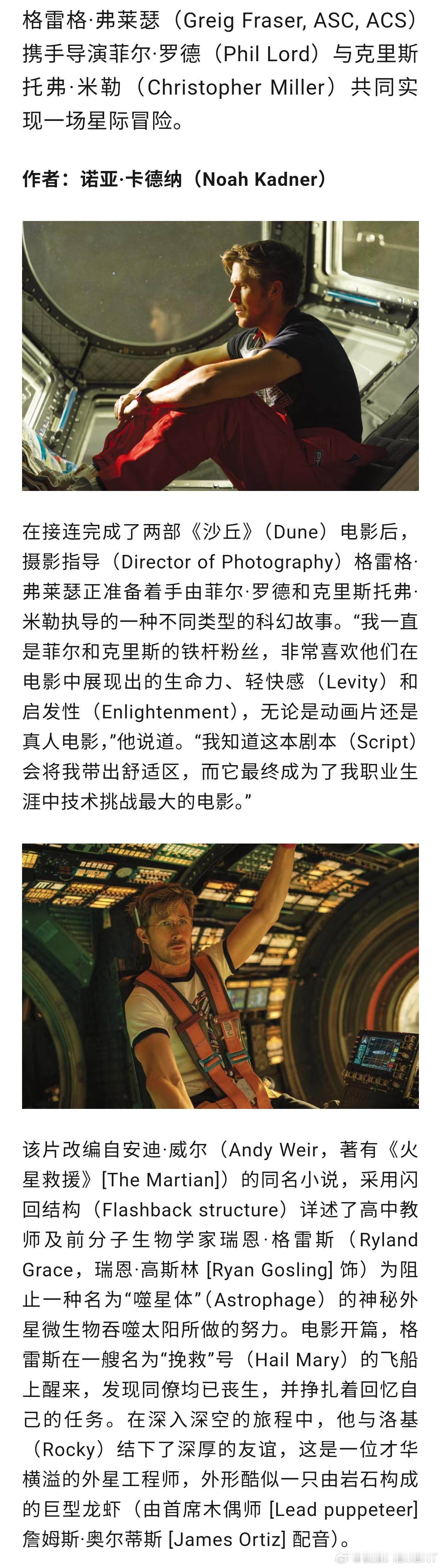 【自购译制】《美国电影摄影师》 | 身负使命之人:《挽救计划》