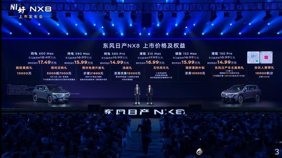 大大大五座NX8售14.99万起在微博这种短平快的平台发长文其实...超级费力不讨好。哼哧哼哧花了很长时间写了一大段,可能流量非常少。但是吧...今天还是想好好表达下,想到哪,写到哪。这次东风日产NX8这波胆子挺大,有两个蛋够有种:✓ 技术发布会:一反常态,不公布预售价✓ 上市发布会:无套路,无尿点,足够短价格是最清晰的:置换价格14.99-17.49万!!!!!!
