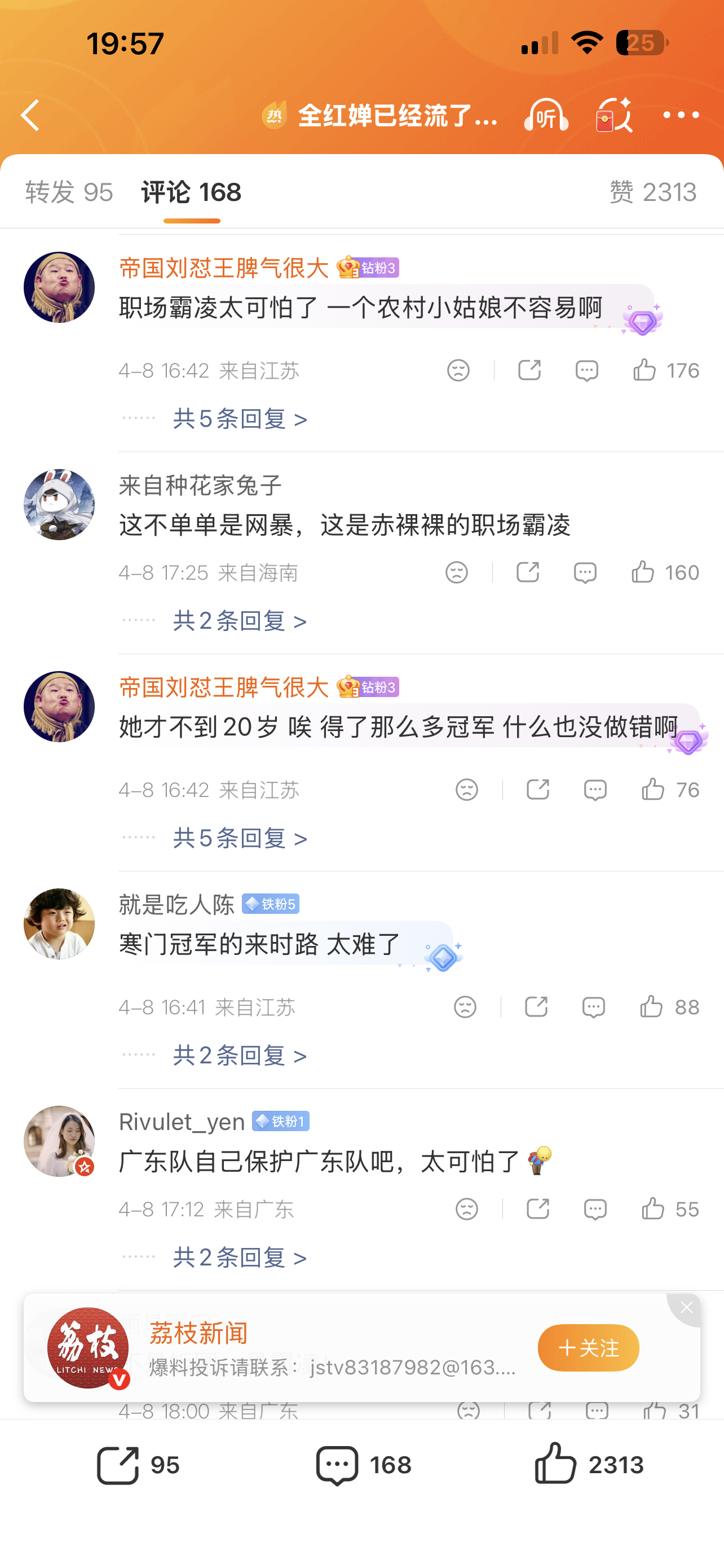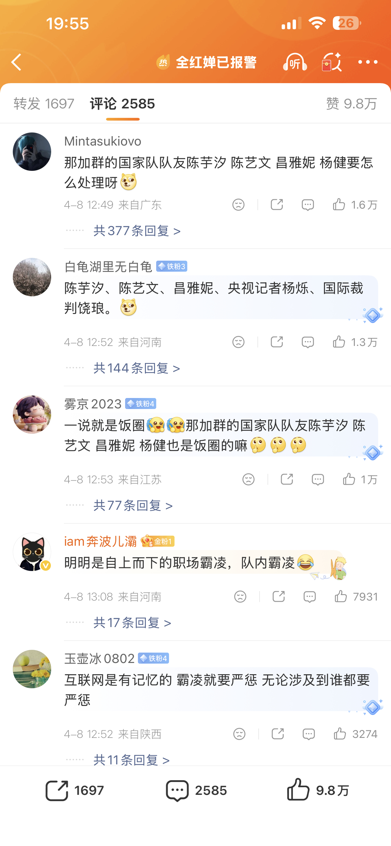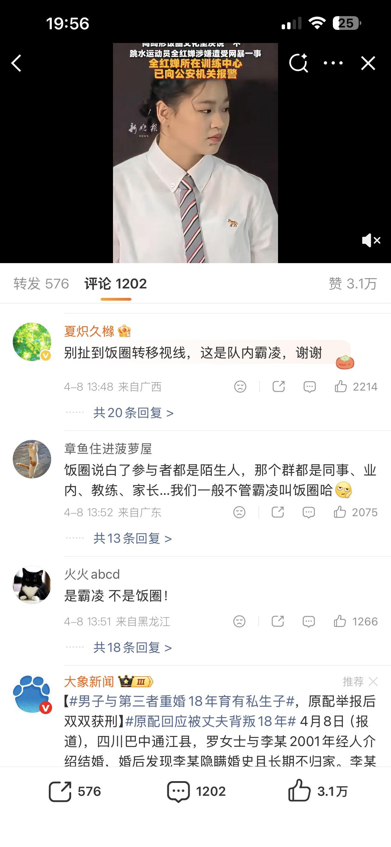 彻查到底是谁在围攻全红婵刚才翻看了多个关于全红婵的热搜,看了评论区,热议的焦点不是体重,不是饭圈,而是职场霸凌,看看那群里面都有谁?队友,教练,记者等等……