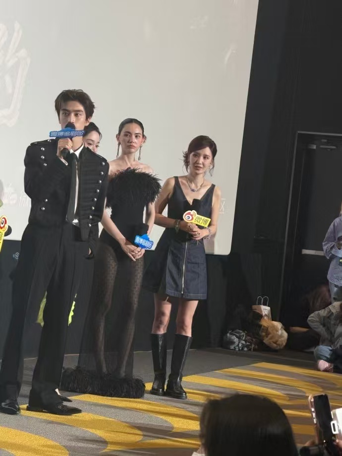 C位给主演张萌站一边 张萌当制片人就是那种会为演员着想的人,自己演最难的角,把好的留给别人,合照还主动站边上。