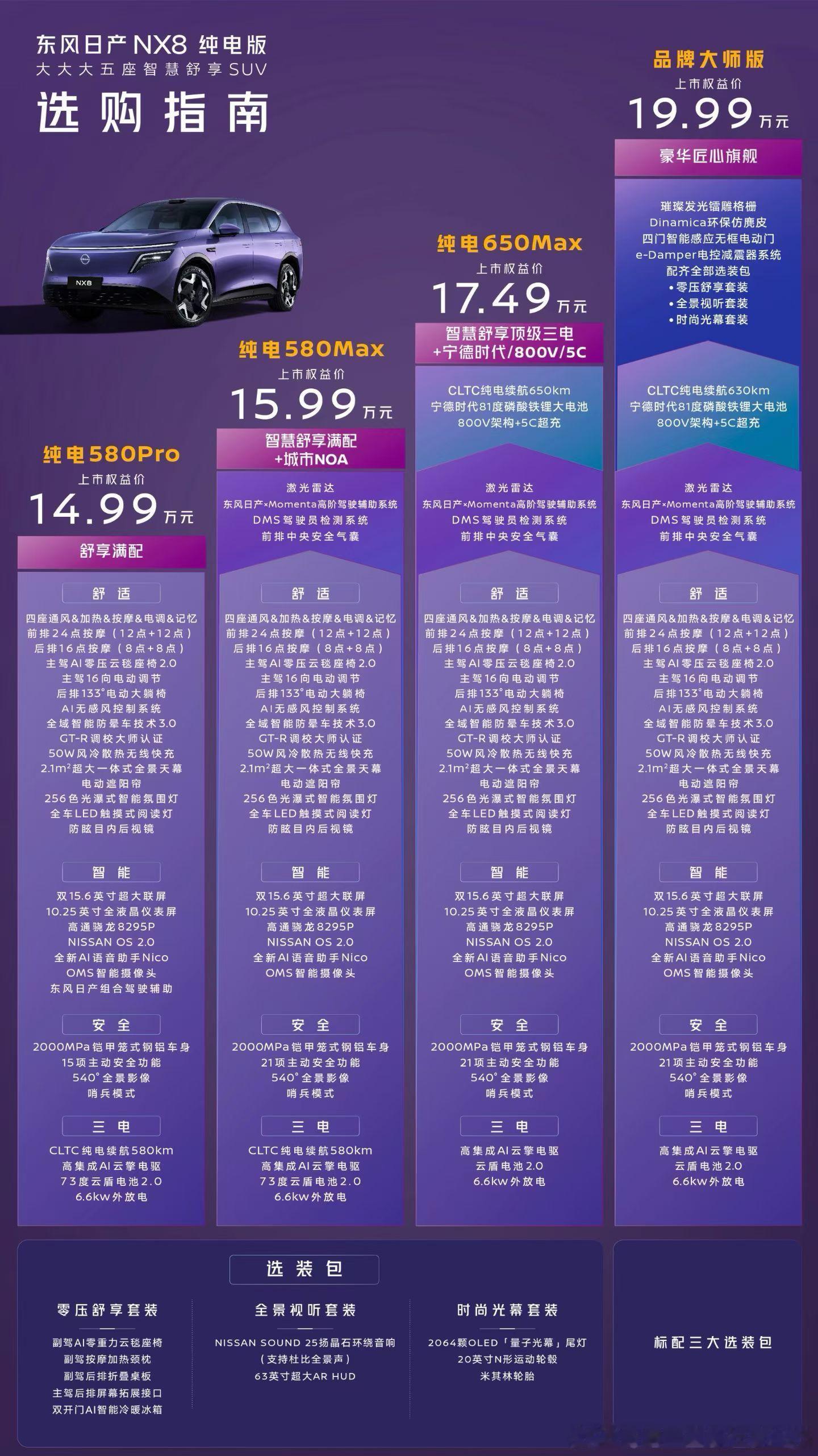 大大大五座NX8售14.99万起堪称史上最短的发布会。简洁清晰的选购指南↓