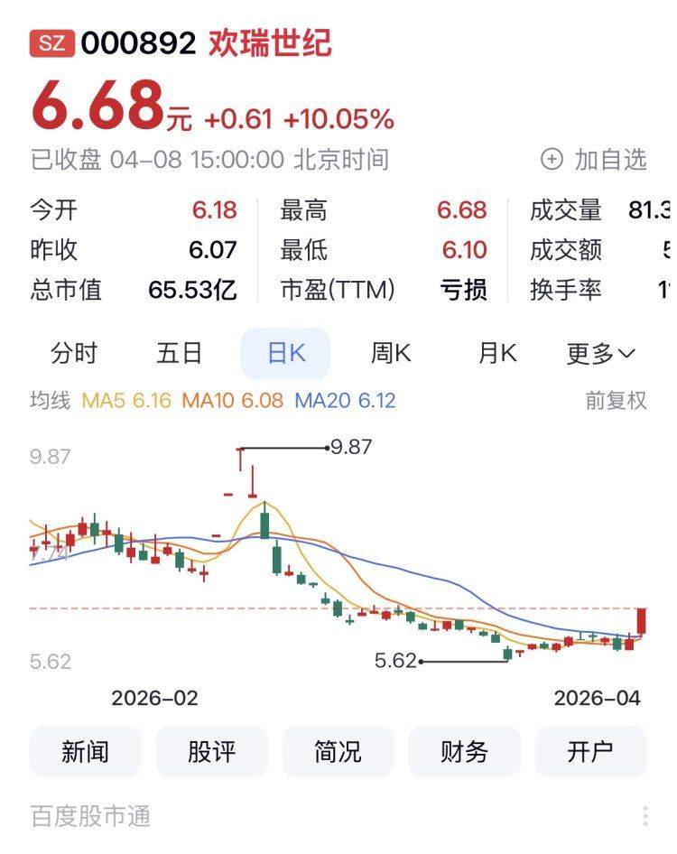 欢瑞世纪涨10.05%列日涨幅第一