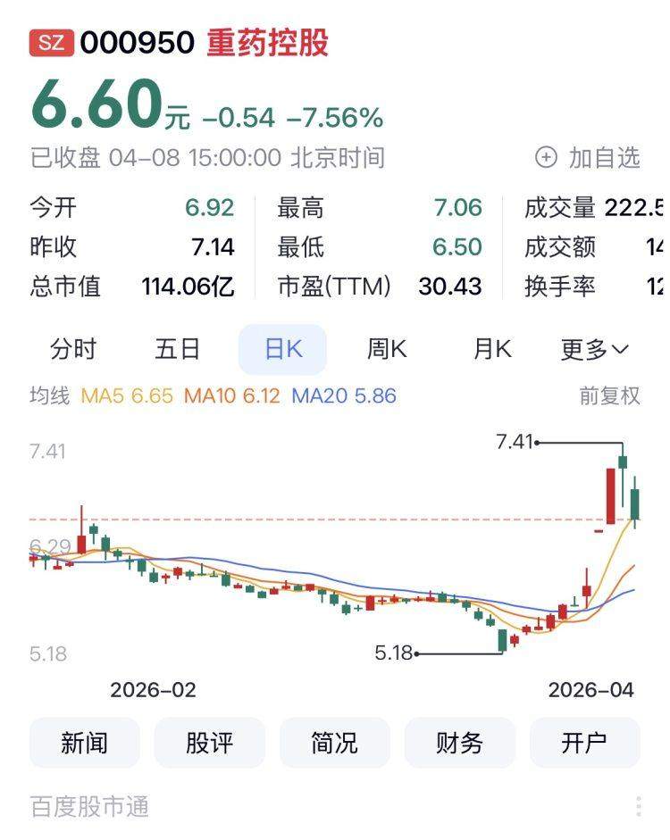 下跌渝股4家,分别是重药控股、北大医药、华森制药、福安药业。