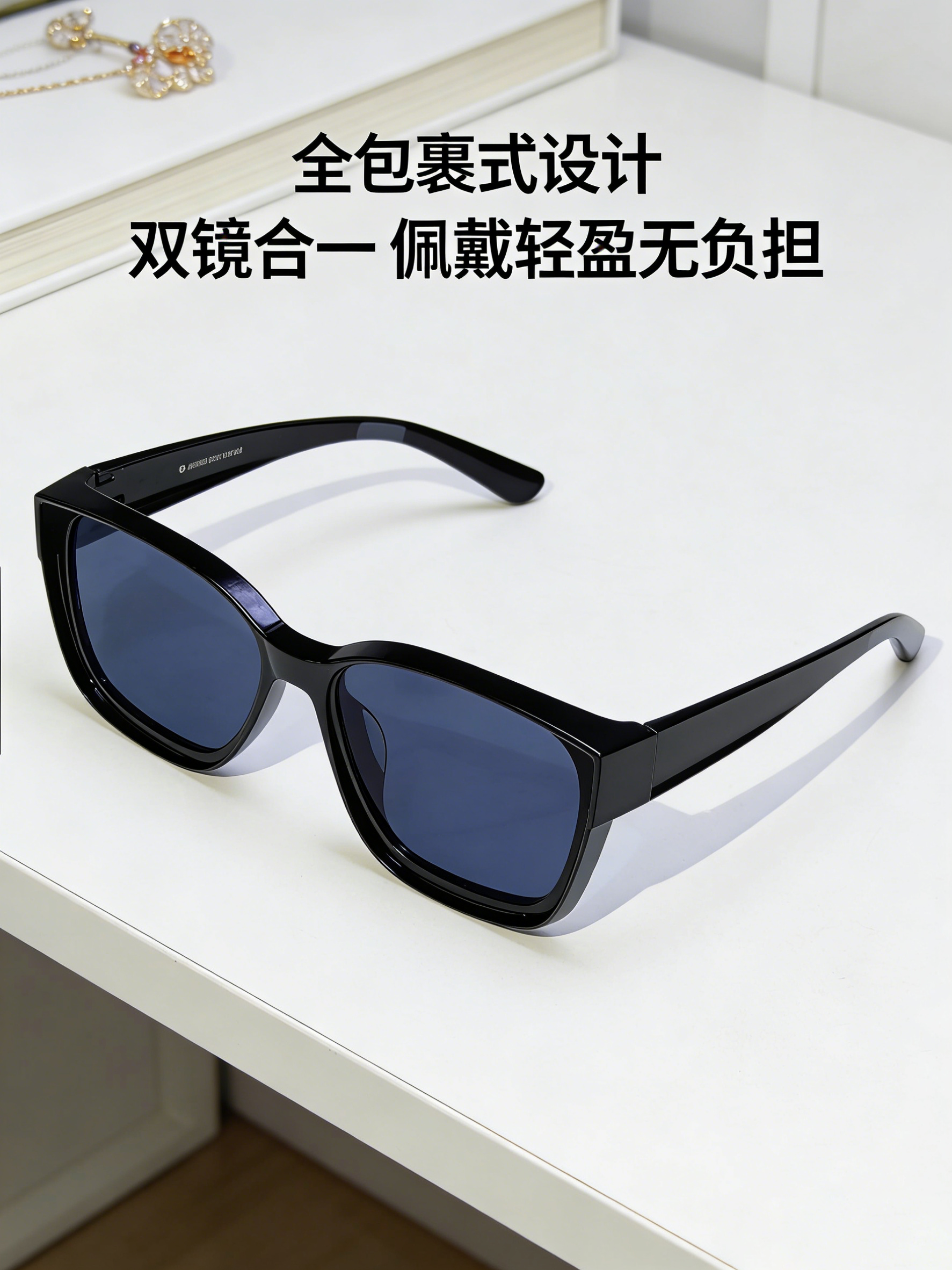 专为近视人群打造的太阳镜,匹配市面多种近视镜框型。加宽镜架,全包裹式设计,双镜合一,佩戴效果无痕美观,上推下拉一秒切换,灵活佩戴,大框型设计,男女通用款式,修饰脸型,更显脸小,比夹片要更方便。