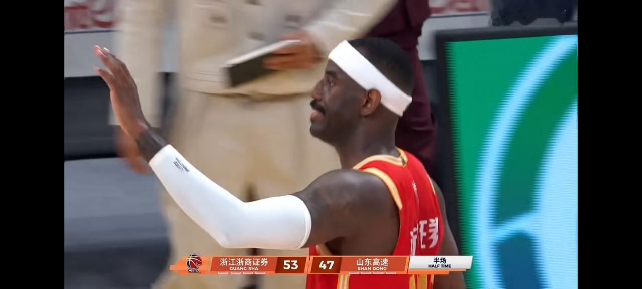 山东高速约翰逊太差了,克里斯伤愈回归后一定裁掉他!CBA常规山东高速客场挑战浙江浙商证券,上半场战罢,山东高速以47:53落后6分。山东高速小外援约翰逊在场上就是卧底,各种投篮不进,失误频频,防守拉胯,上半场得分挂零,比对方塔克差太远了。浙江队主打外援塔克,山东高速换谁也防不住他,高诗岩在他身上3次犯规,防不住塔克山东高速这比赛很难赢。塔克半场就砍下27分,突破上篮造犯规能力太强了。山东高速许梦君延续上一场的火热手感,三分球三中二,下半场还要发挥他这一点!
