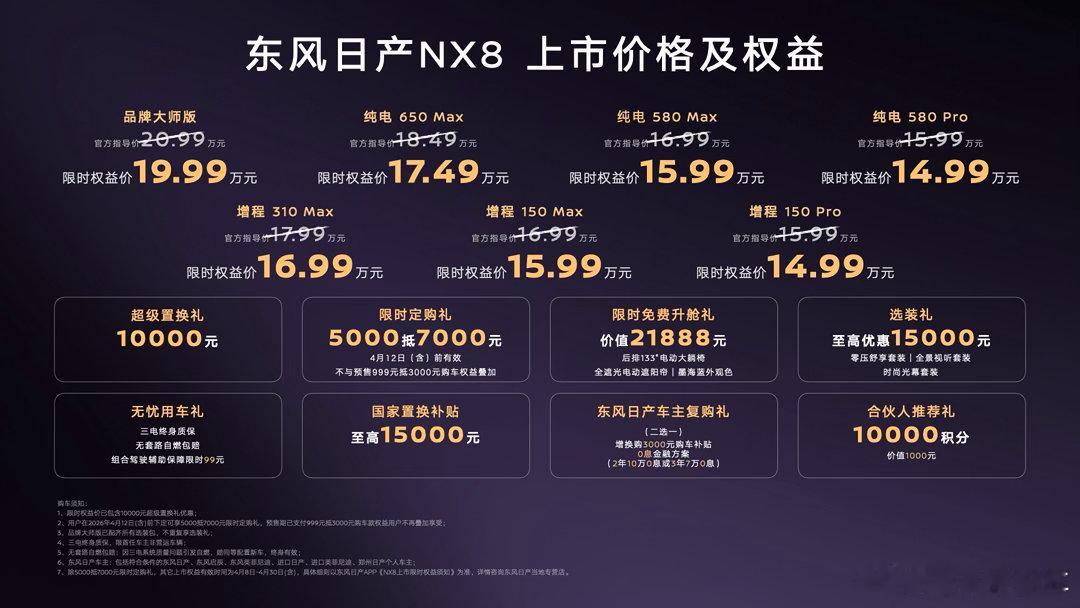 今晚东风日产NX8的正式价格终于揭晓了,有增程也有纯电,14.99w-19.99w