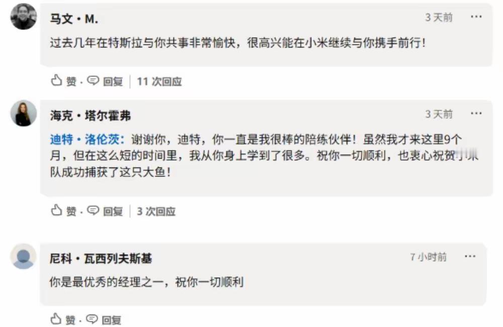 不过话又说回来,我又觉得小米去“挖人”,这个“挖人”的词用的不对,应该叫特斯拉高管跳槽另谋发展加入小米才对。