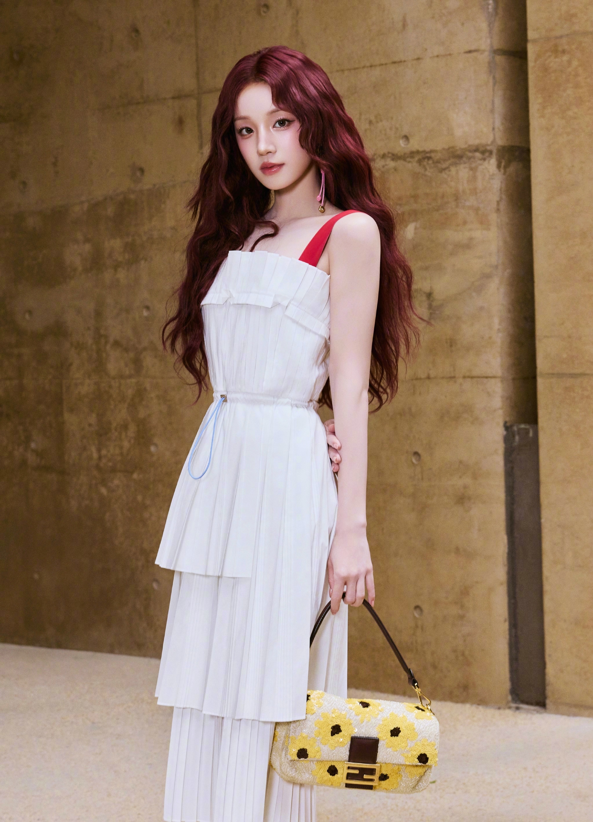 宋雨琦 in FENDI 📸🍂 景德镇活动造型图,身穿白色连衣裙,搭配明媚红