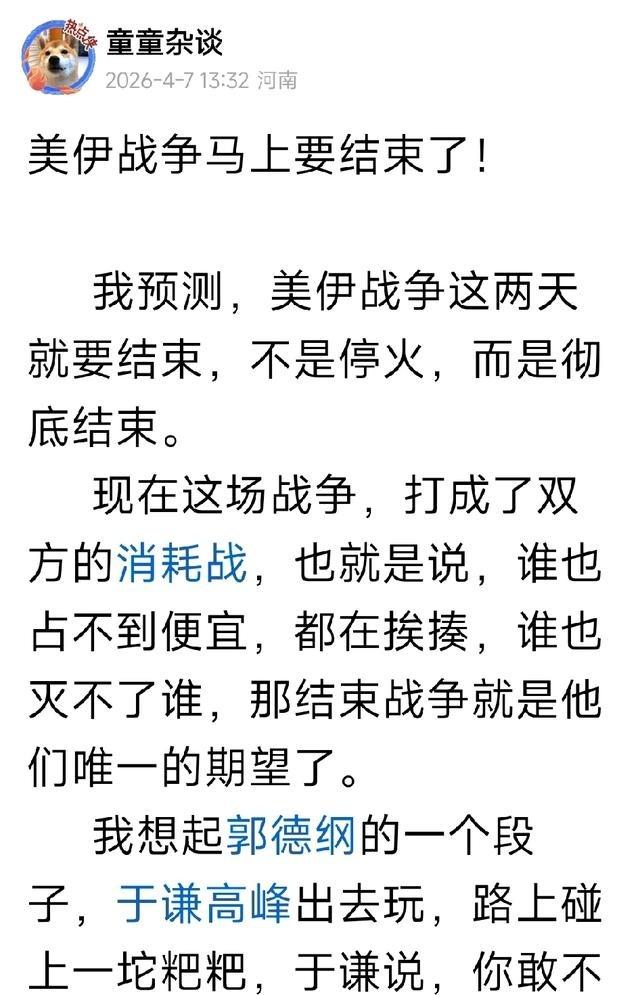 果然被我猜中了,特朗普同意停火了!其实和两个人打架一个道理,如果是碾压局,停不了,肯定要打到底,因为获胜的一方不会停,只有这种你也疼,我也疼,同时,谁也灭不了谁,这就相当于自我伤害了,傻子也不会继续打了。这场冲突,给了伊朗一种信念,就是坚决反击,不留余地,对方觉得你在拼命时,他就退缩了。