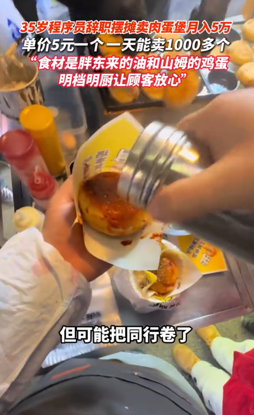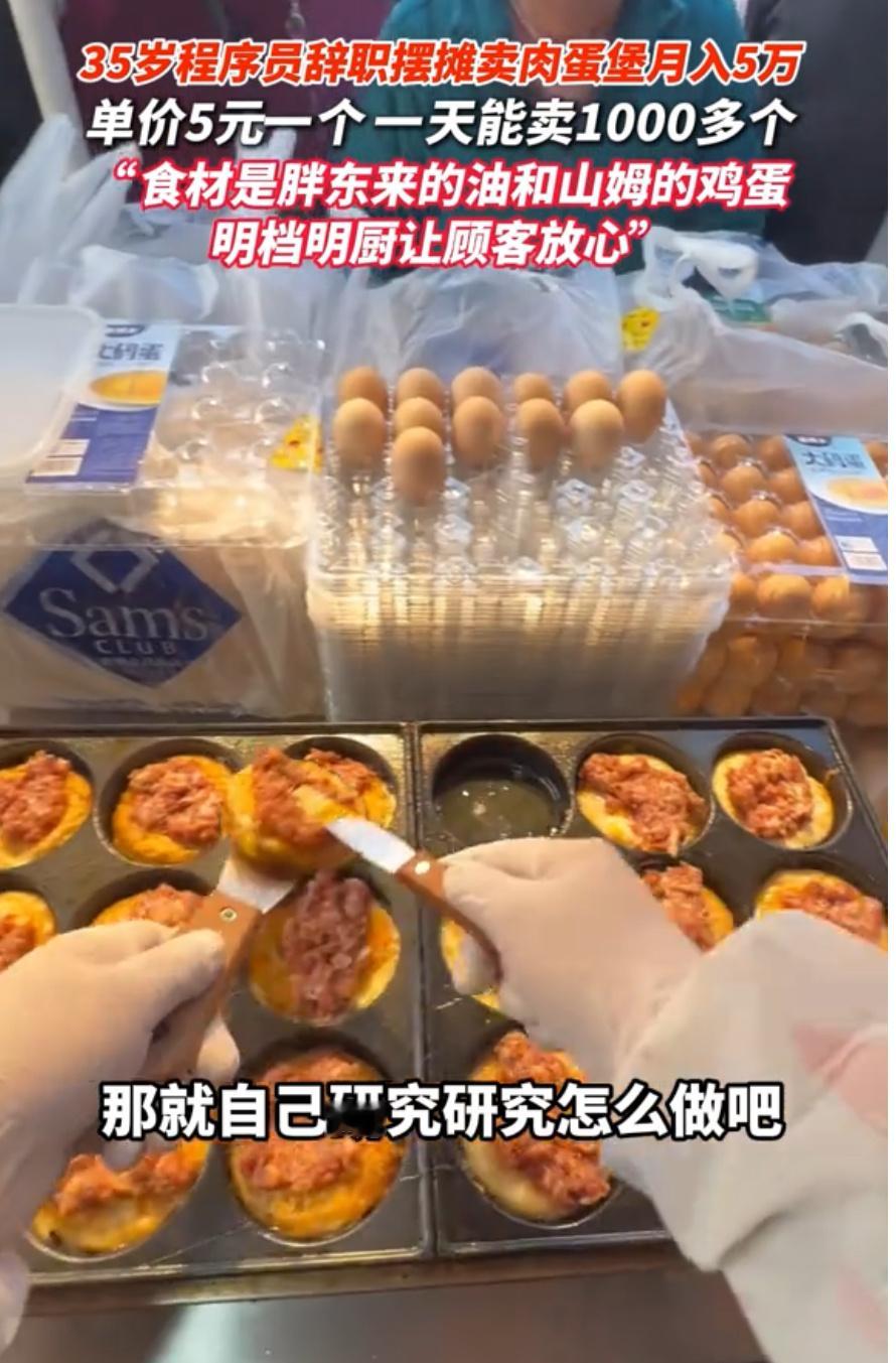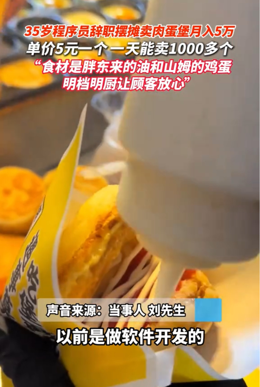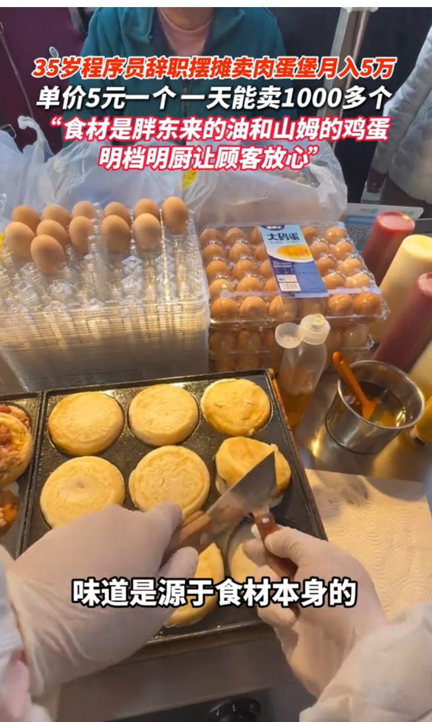 35岁程序员转行摆摊卖肉蛋堡月入5万35岁程序员转行卖肉蛋堡月入5万,成了全网热议话题!日均1000单、5元单价月入五万,搭配高端食材的摆摊模式,看似逆袭成功,却引来全网质疑。产能瓶颈、利润虚高、疑似加盟造势,争议点拉满。有人赞其勤劳跨界,也有人提醒这是极少数案例,转行摆摊,还是要谨慎评估风险。