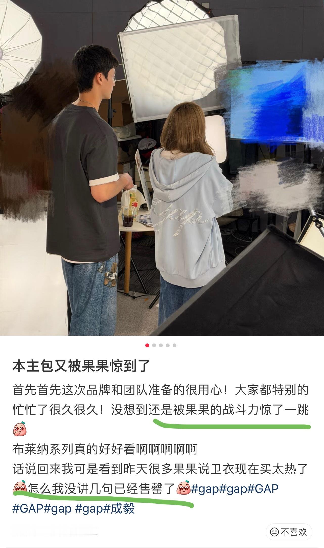 谁不想拥有成毅这样的代言人啊!GAP品牌直播间的员工轻松就把货卖完了,业绩UPUP~嘴角根本压不住!