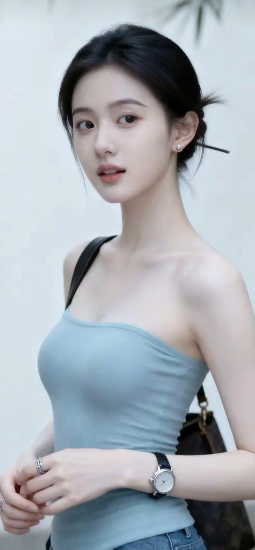 简约而不简单,确实是女神范儿的真谛,一条灰白牛仔裤搭配白色内T!时尚女性气质气
