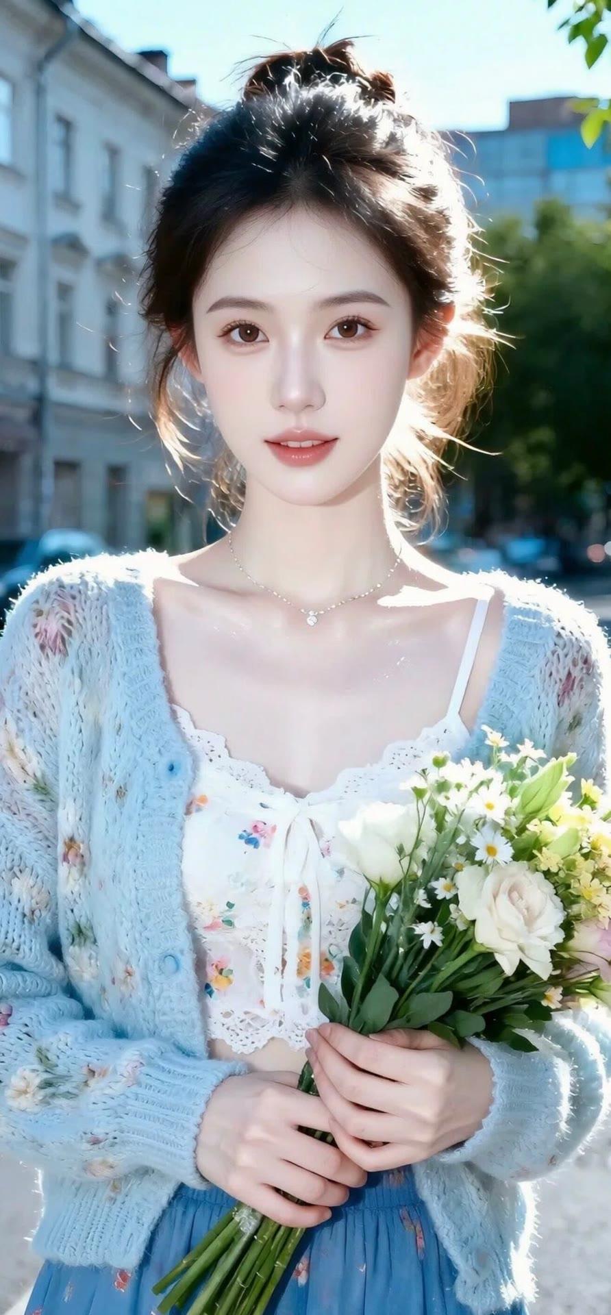 都市少女风,浅蓝色上衣搭配白色短裤,简约时尚,都市气息十足!👗👗👗