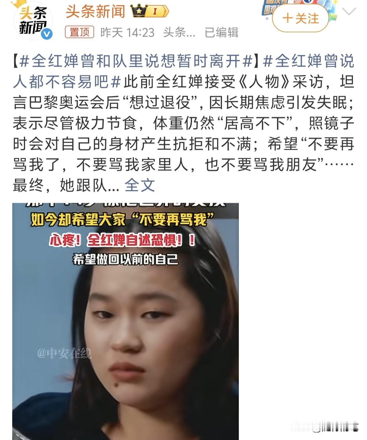一个运动员该有的自信,该有的对金牌的渴望,该有的渴望进国家队的欲望,全红婵现在仿佛被这些网爆霸凌给影响,导致这些都迷失了,变得不自信了。可想而知这种畸形的网爆霸凌,对全红婵的伤害有多深了。希望尽快追究这些网爆霸凌者的责任,还给全红婵一个健康的环境吧。