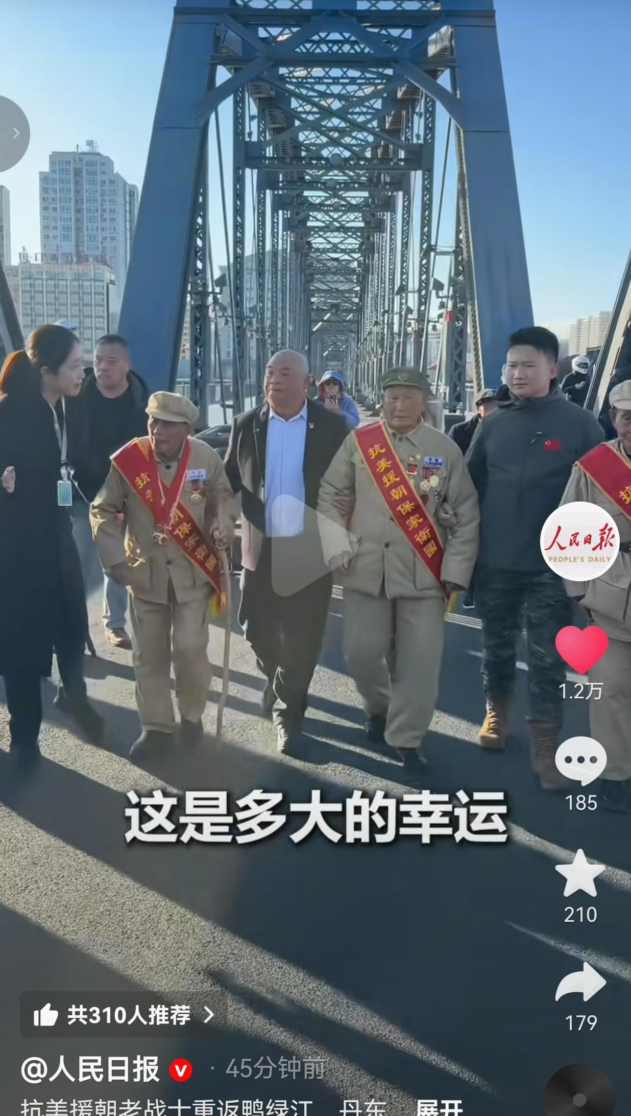 如今七十多年过去了,他们白发苍苍、拄着拐杖,再一次踏上鸭绿江大桥,回到当年出发的地方,被最普通的老百姓,用最朴素的方式,狠狠爱着、敬着、护着。