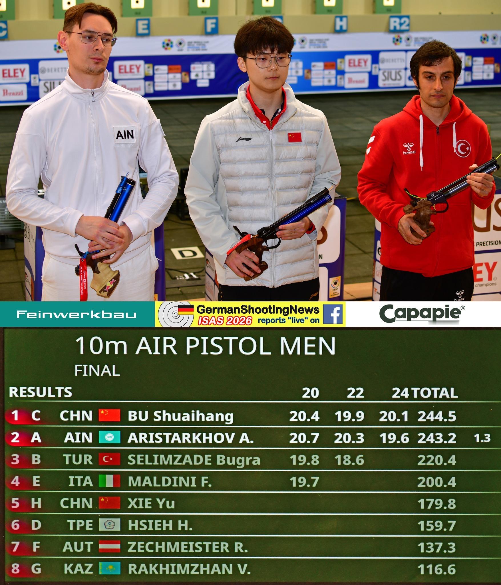 男子10米气手枪布帅航比赛颁奖图cr德国射击新闻、土耳其射击协会、国际射联官网