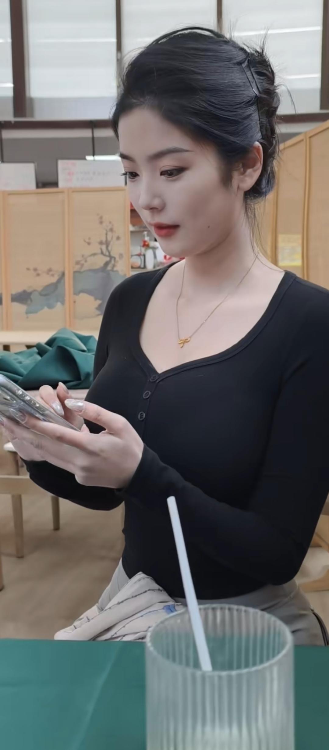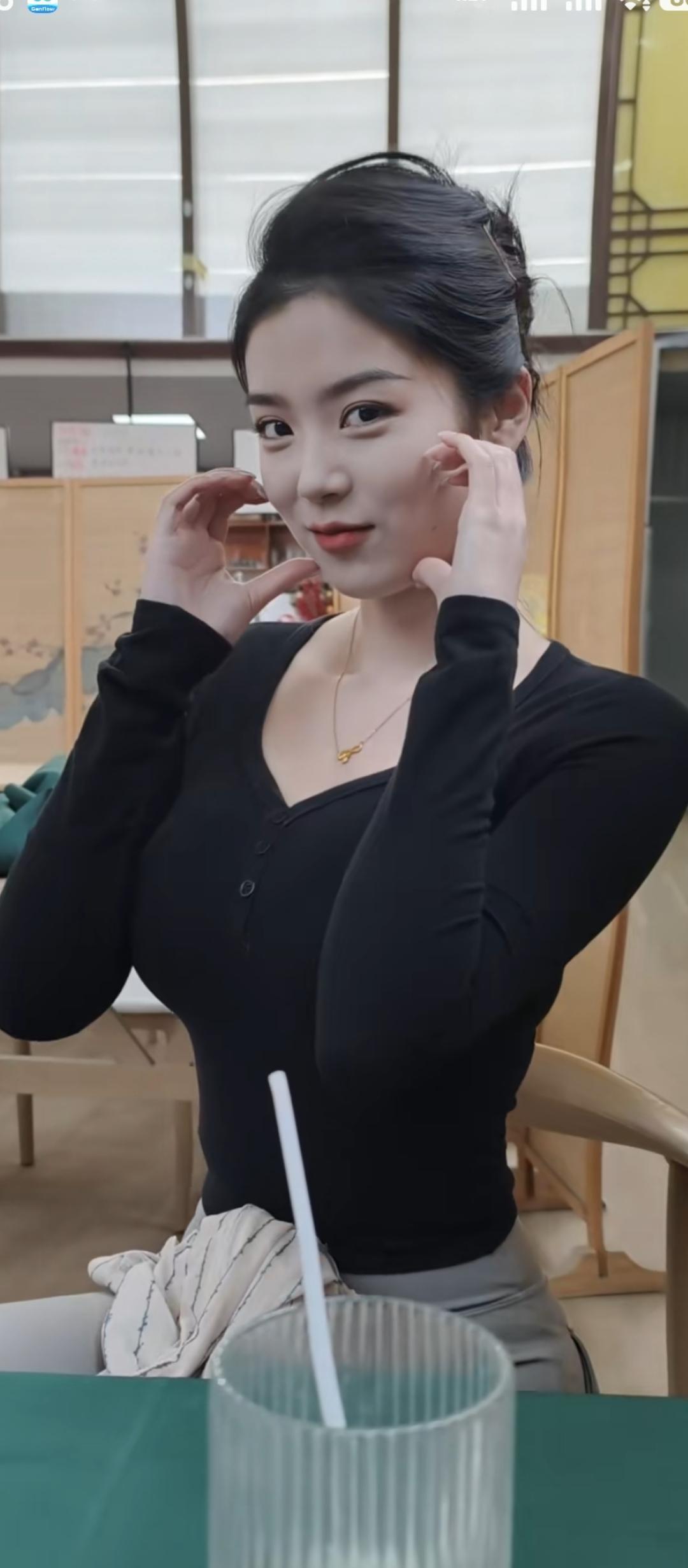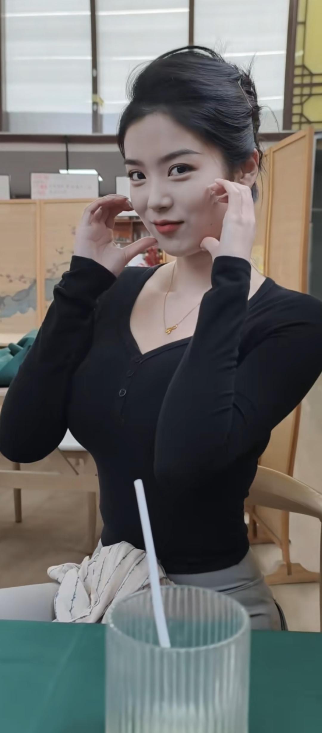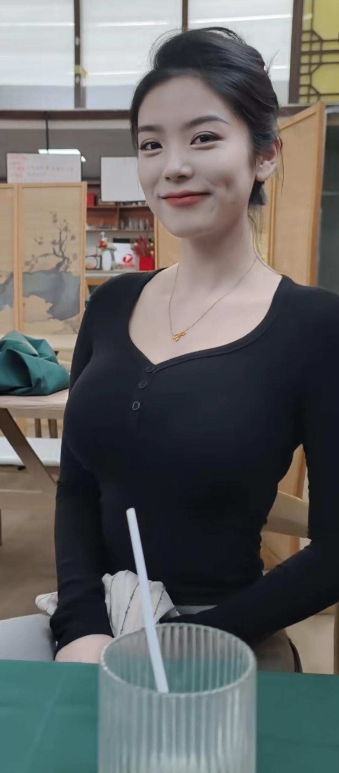 优雅黑衣女子,微笑中透露温柔,静享咖啡时光。