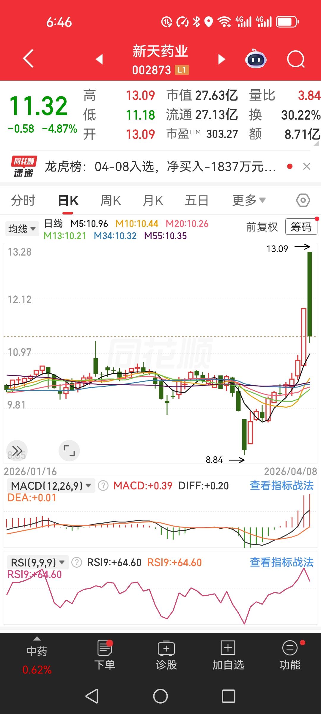 今天聊个实战案例:新天药业。早上直接一字涨停,气势拉满,谁看都觉得稳了。可这个板