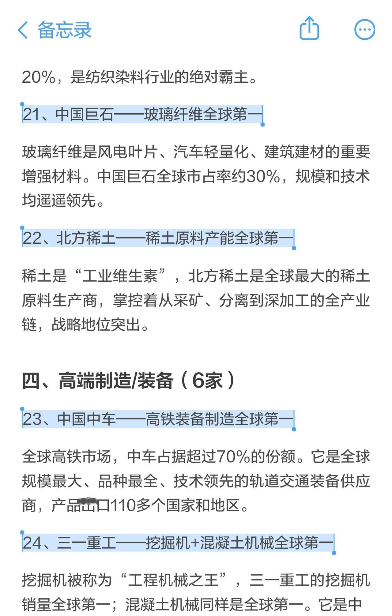这些公司在各自细分赛道通过技术突破、规模效应、客户绑定等方式建立全球领先优势,是中国制造业“全球第一”的核心代表。