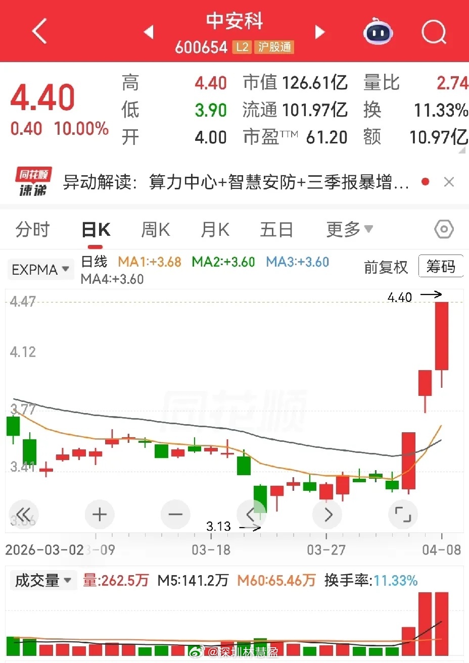 算力三剑客,中安科,奥瑞德,合力泰,昨天都涨停了。中安科二进三成功,今天如果能继续走强封板,则有望成为此板块之领头羊,从而引领该板块在电力、医药之后,成为又一个主线。如果今天不能继续封板,则将进入短暂调整时间,调整方式有待观察。奥瑞德,今天面临箱体突破,能否突破,是个关键,不过此股前面每次上涨都是两连板后就震荡。合力泰,较长时间的下跌,迎来首板,今天如果不能连板,则下跌趋势仍旧没有改变,只有连续涨停才有希望扭转乾坤。
