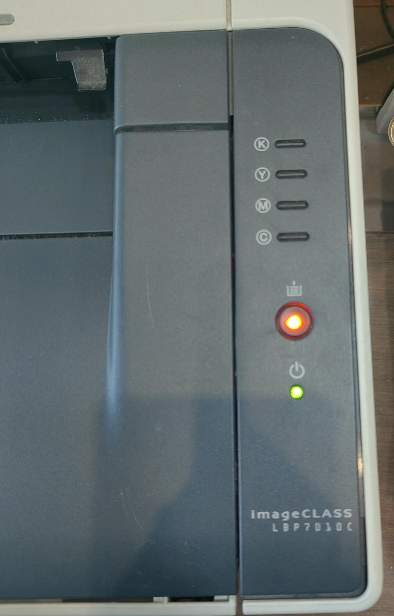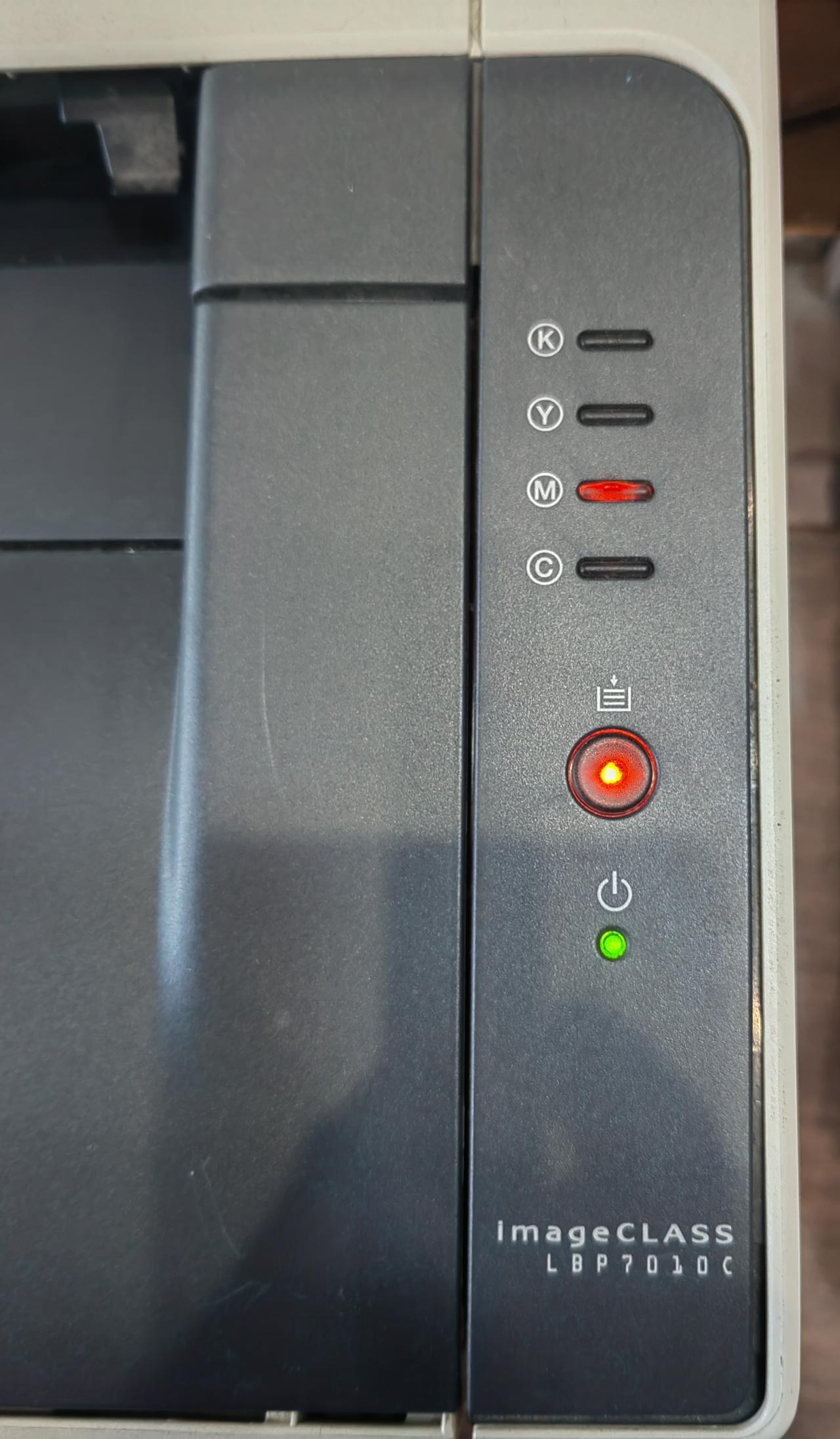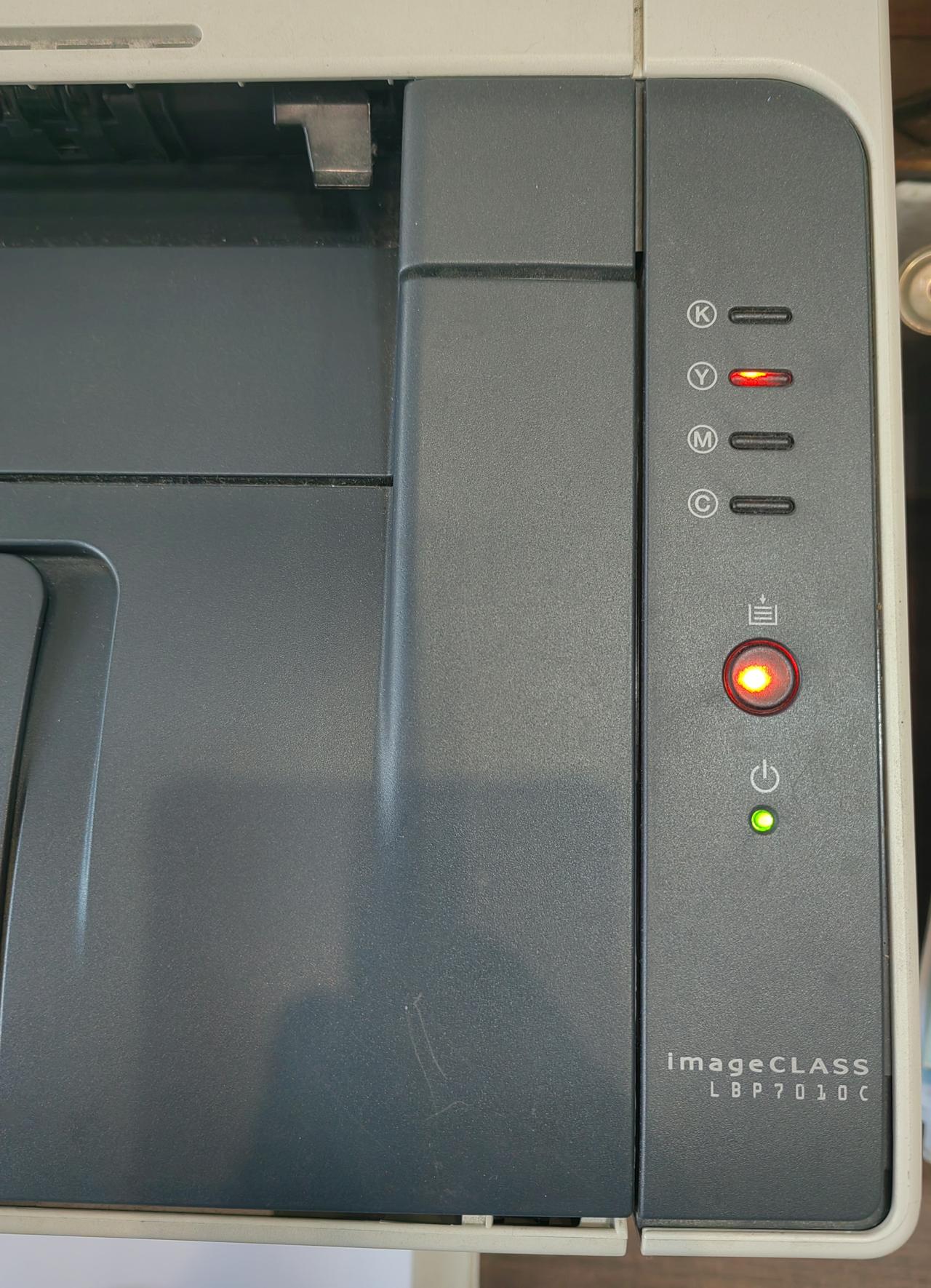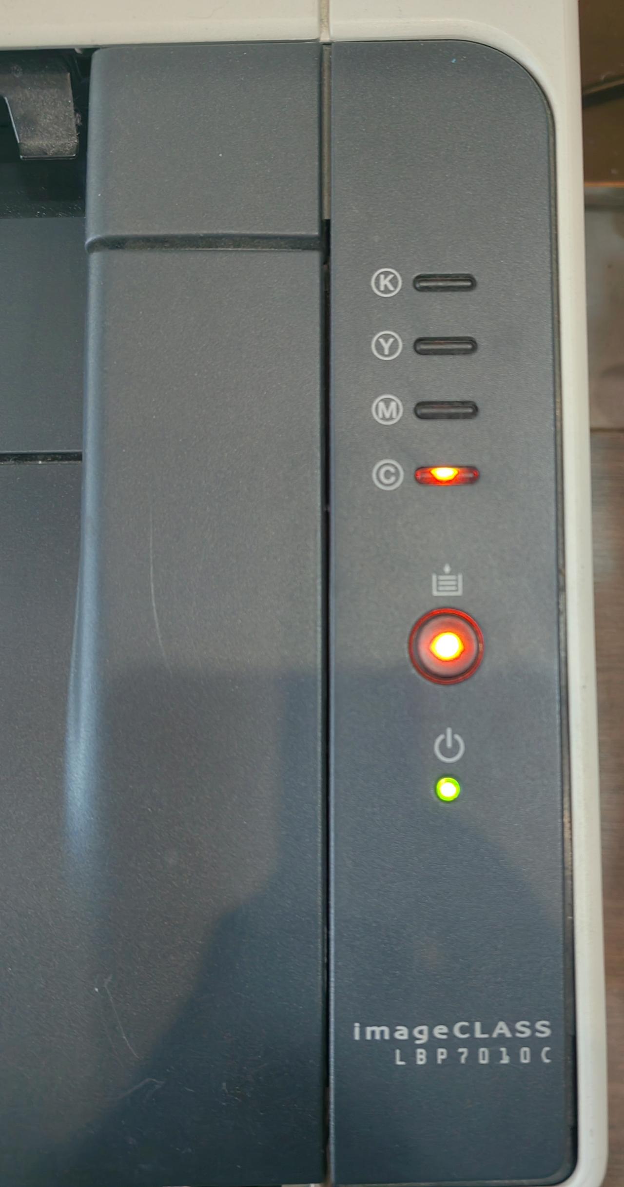 2、机器控制面板处的黑色粉盒提示灯会闪烁, 只需要按着进纸按键几秒钟之后,进纸按键就会常亮,在进纸按键长亮的情况下,按一下进纸按键,碳粉盒托盘就会滚动,这样第二个颜色的粉粉盒就会提升到粉盒安装口;