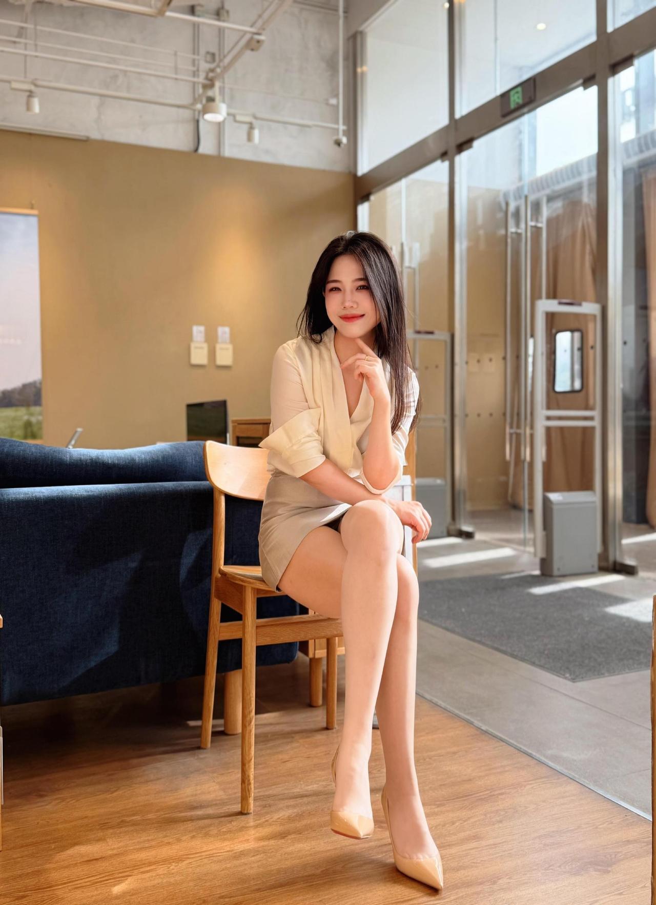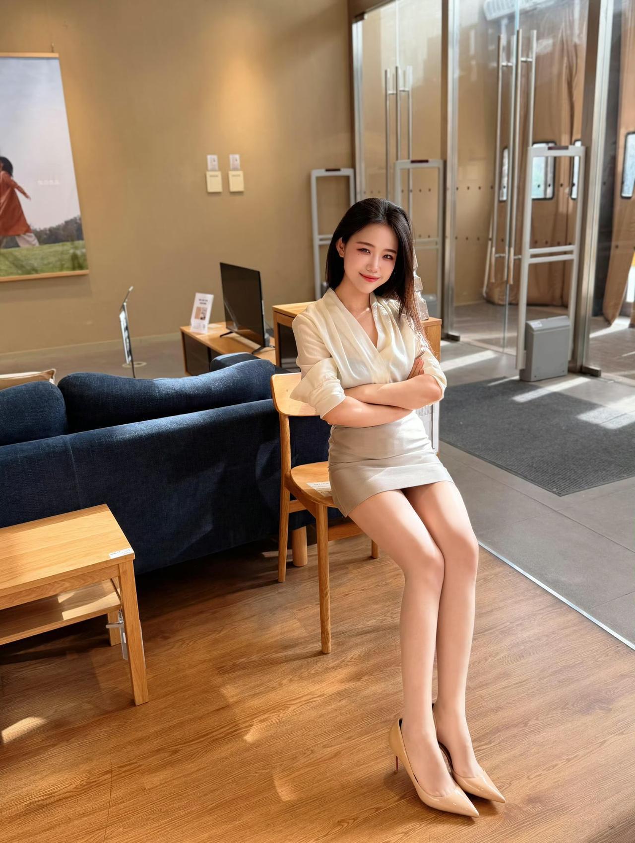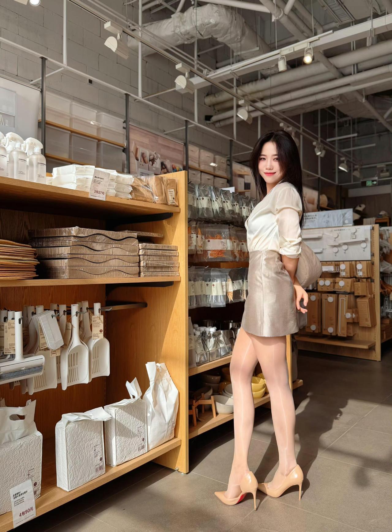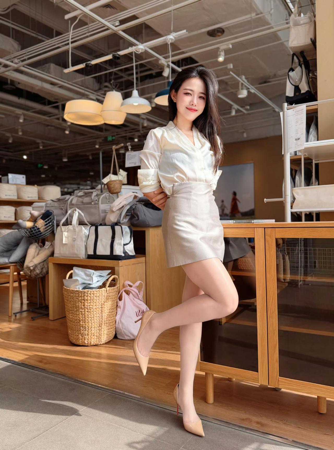 - 鞋子用裸色高跟鞋,同色系搭配拉长腿部线条,和整体轻熟风格完美适配。