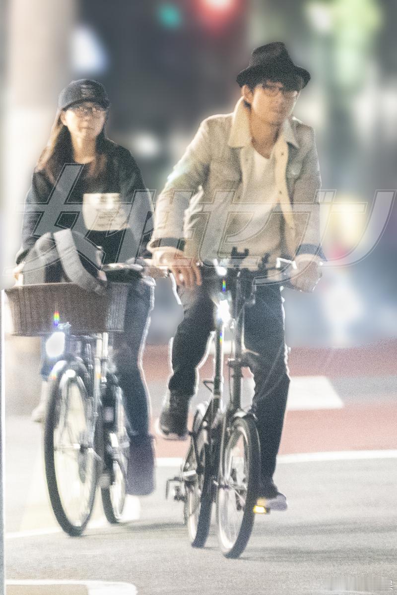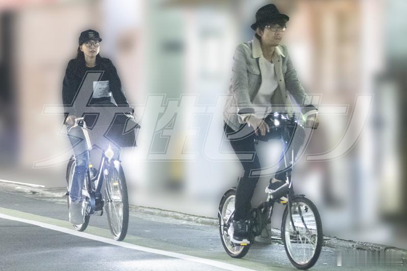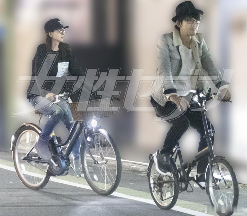 女7:内田有纪柏原崇2019年2shot。一组自行车约会照,一组柏原接内田下班照